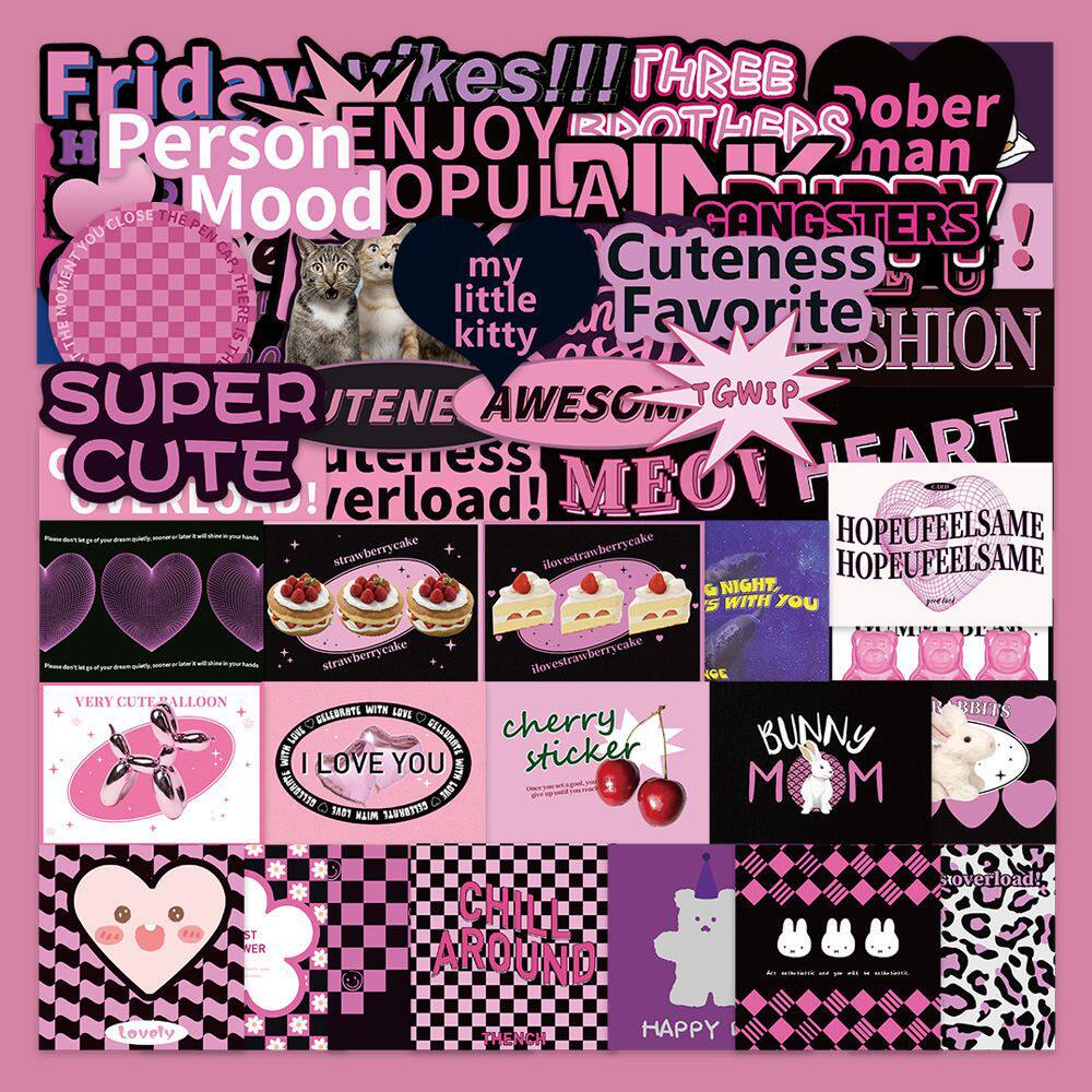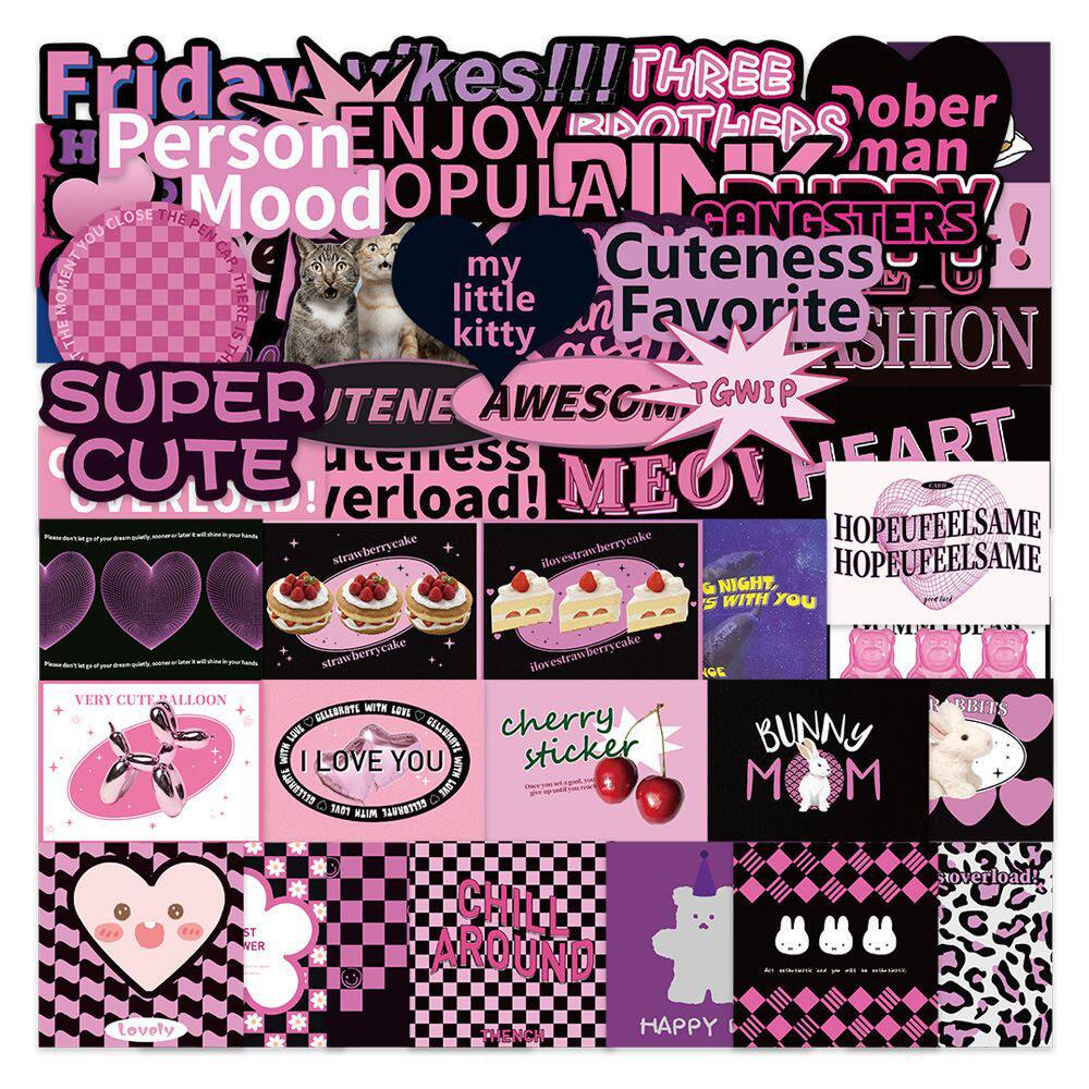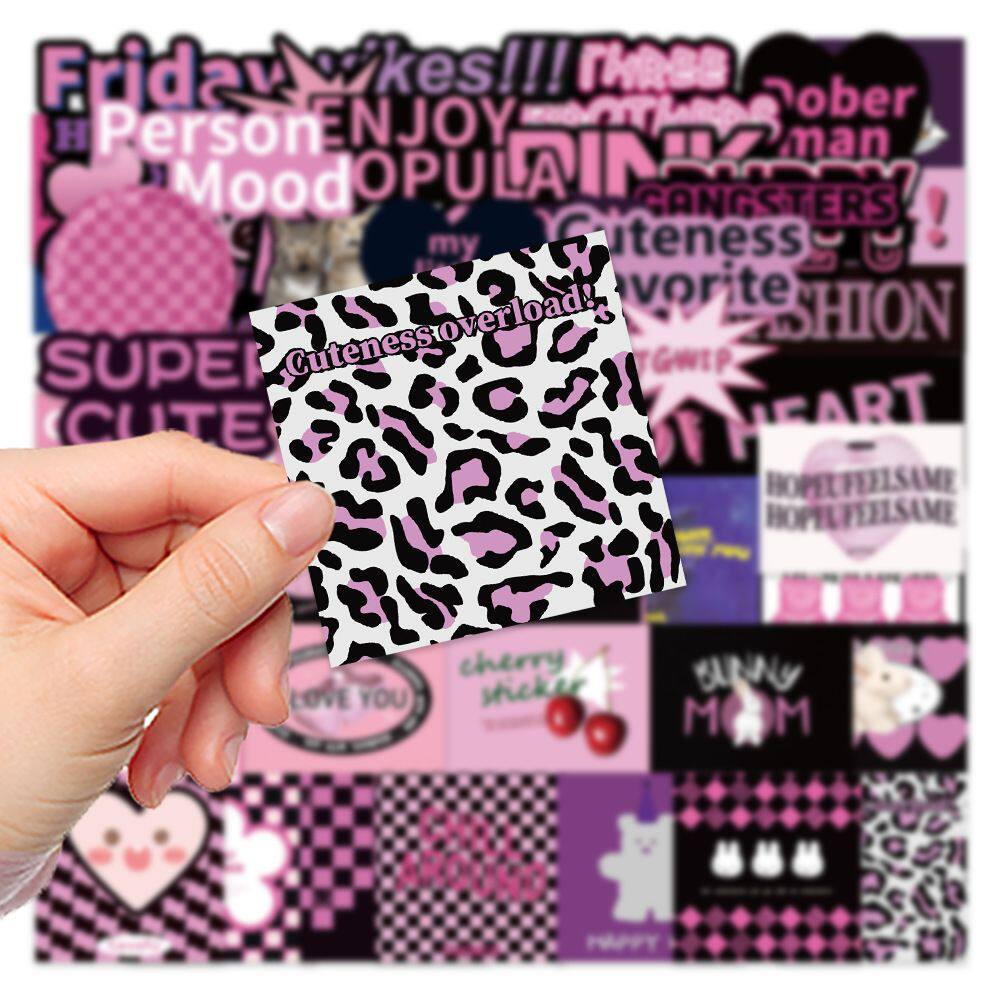 DIY手机55张黑紫手账欧美复古英文贴纸拉杆箱笔记本电脑装饰DIY - 古风姑娘手账文具礼品馆
