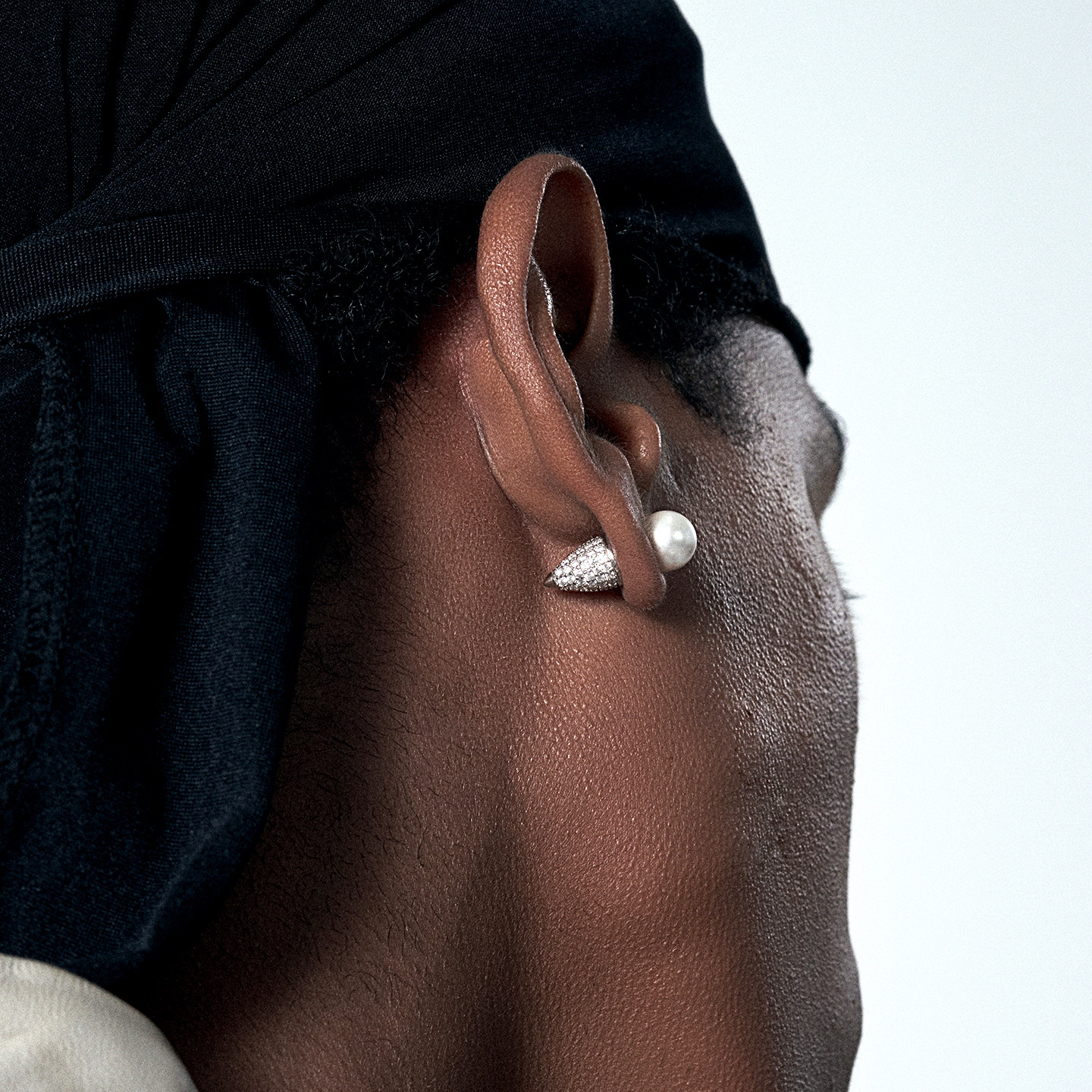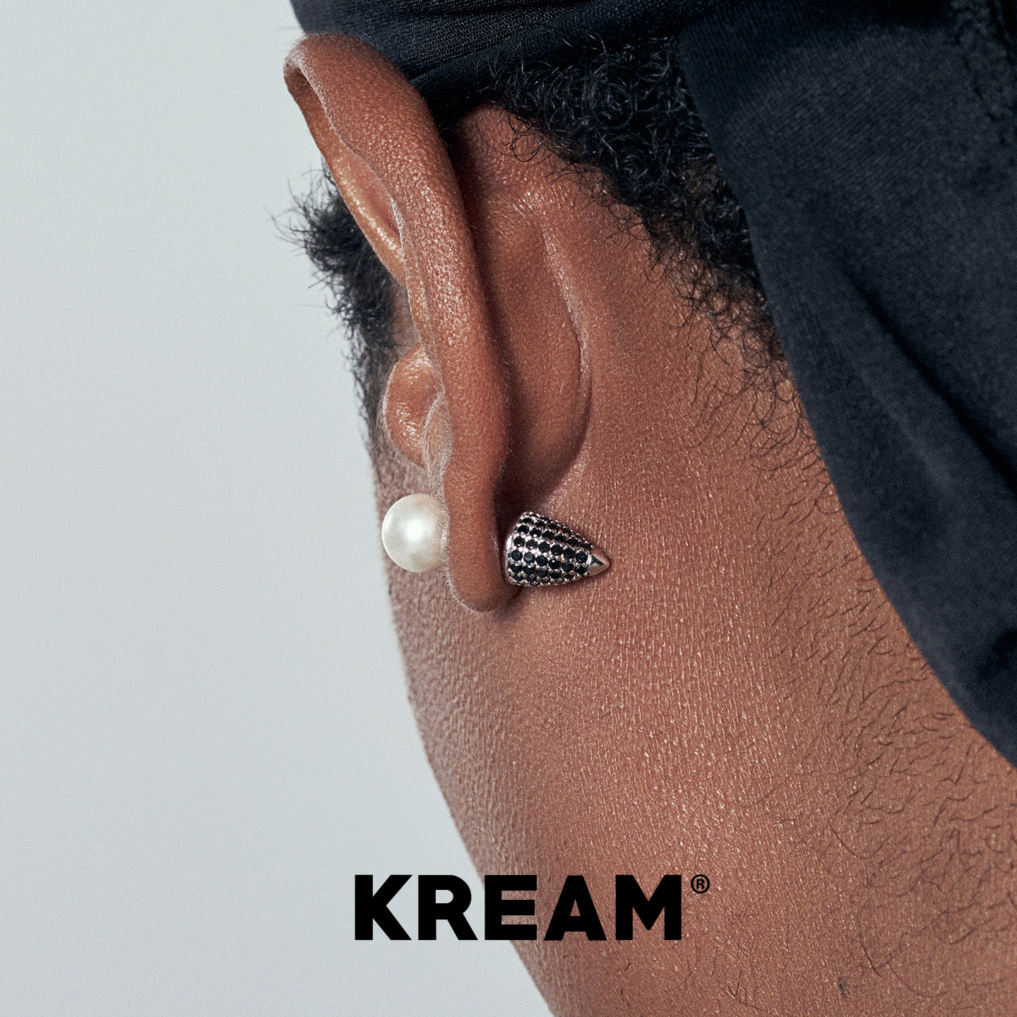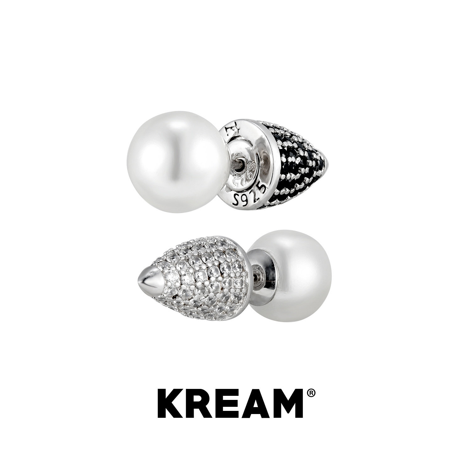 KREAM 925银 黑白钻锥形贝珠耳钉男嘻哈女耳饰高级感小众情侣礼物 - KREAM