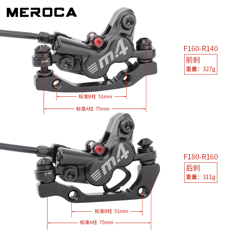 MEROCA山地车四活塞油刹自行车双边制动油碟后液压碟刹器刹车套件 - Dream梦幻单车