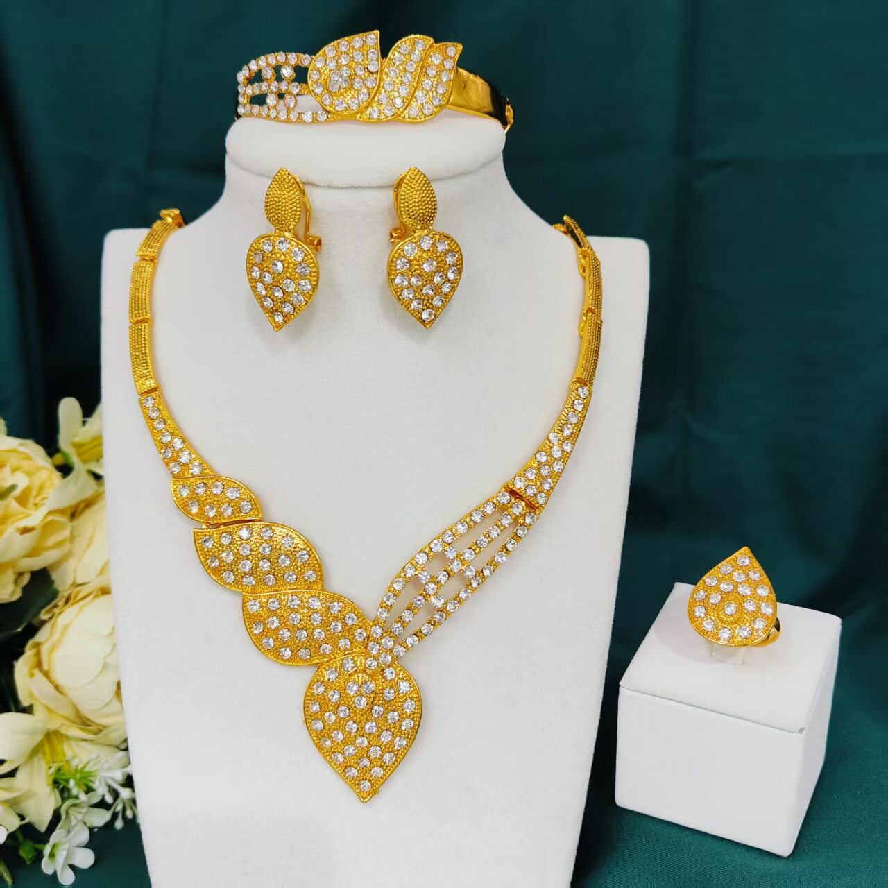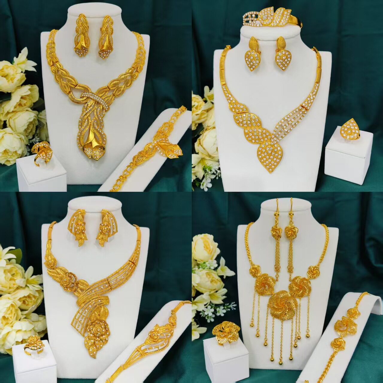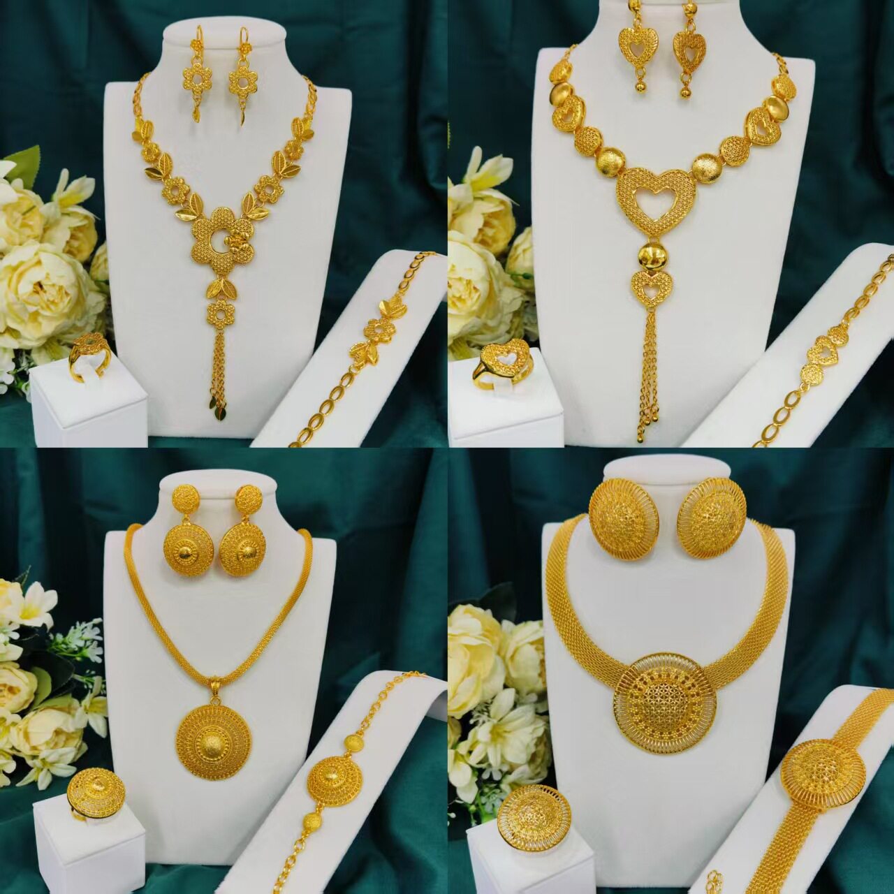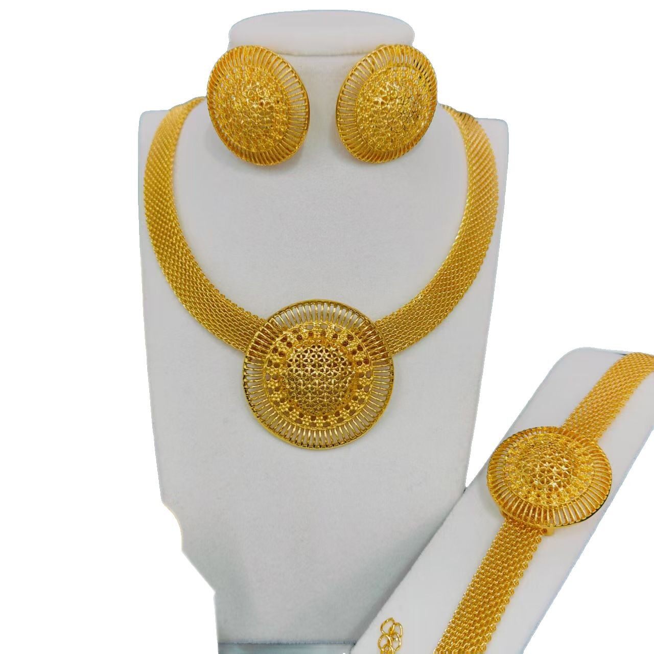 跨境尼日利亚迪拜24K金首饰套装新娘项链手链耳环戒指四件套合集 - 叶姐贸易店
