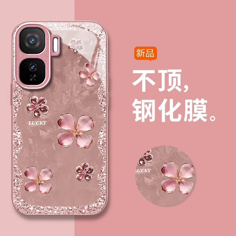 四叶草粉适用iQOONeo11手机壳iqooneo10pro+/9spro/855竞速版新款iqooneo8/7/6se玻璃硬壳iqooneo5高级感neo3 - 惠欢旗舰店