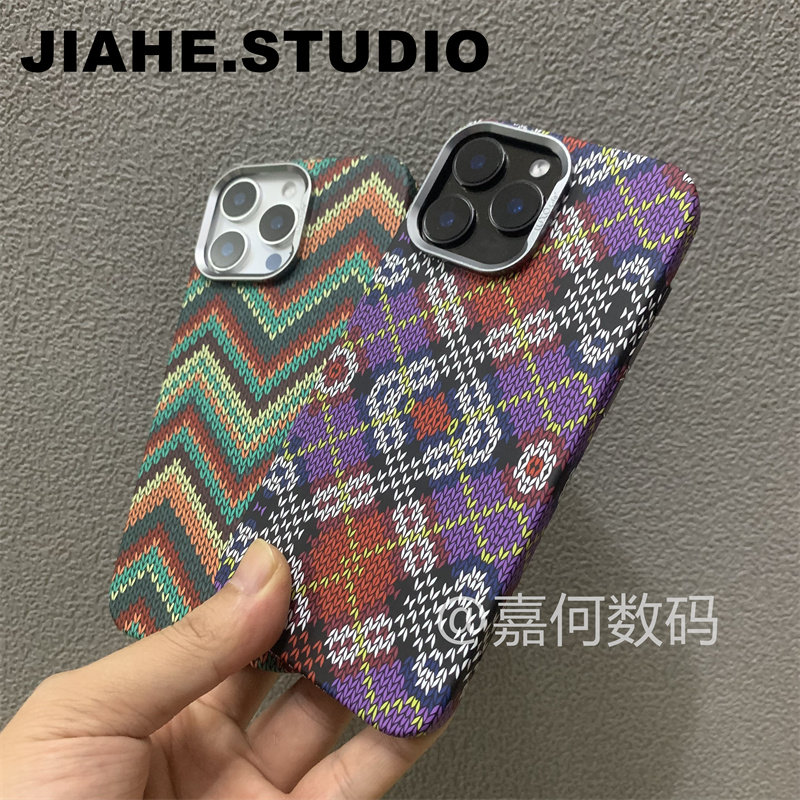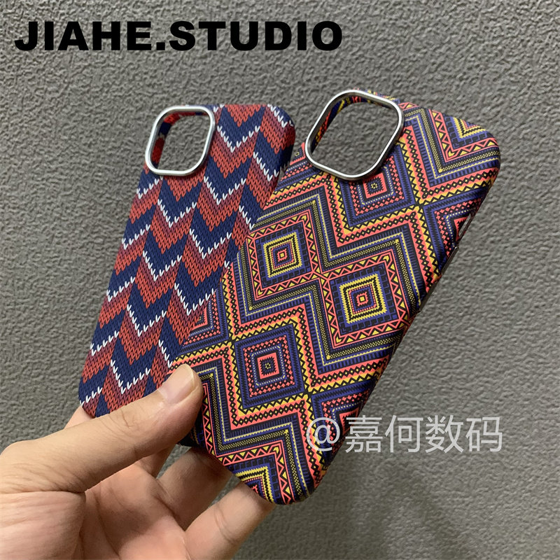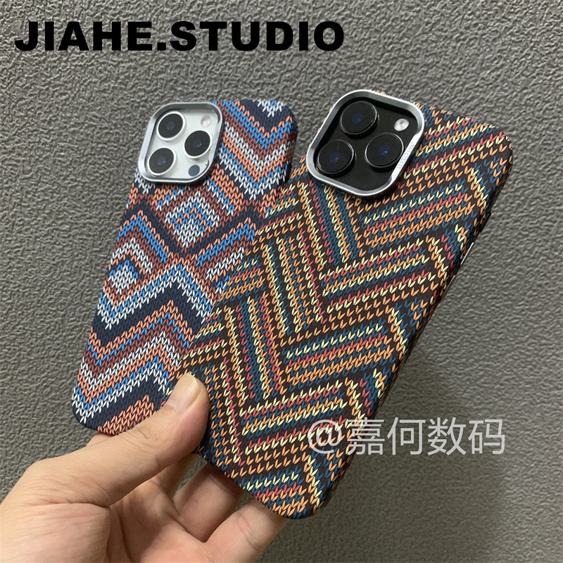 曼陀罗图腾曼达拉编织纹碳纤维纹理PC材质适用iPhone16proMax手机壳磁吸苹果15proMax硬壳13浮雕14保护壳轻奢 - 嘉何数码