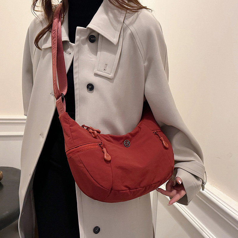 日系超轻时尚帆布包男女斜挎包多口袋休闲单肩包新款大容量牛角包 - 莱茵户外休闲潮包