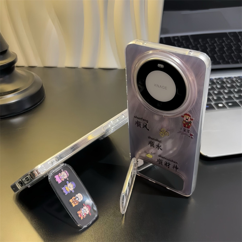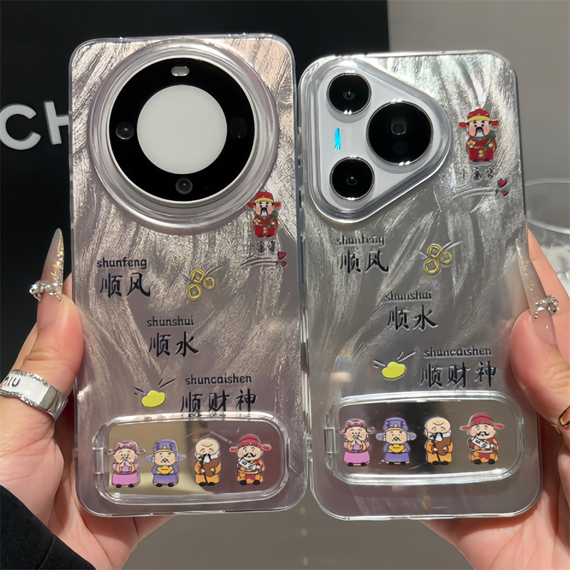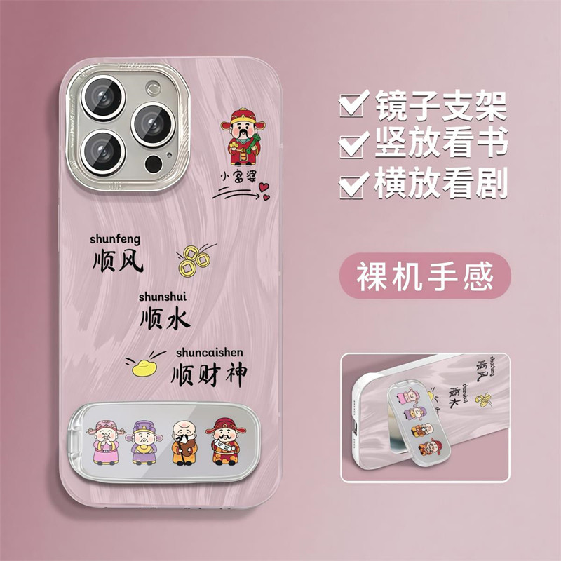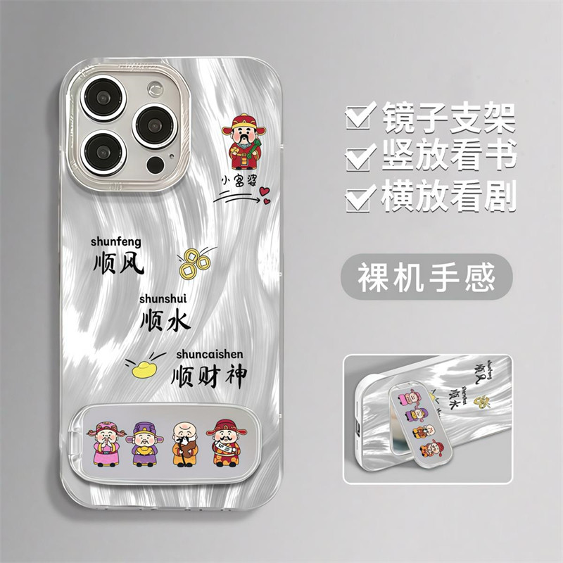 顺风顺水顺财神镜子支架适用iPhone16promax防摔手机壳苹果小米15简约note14华为mate70荣耀300全包OPPOvivo - 森缪旗舰店