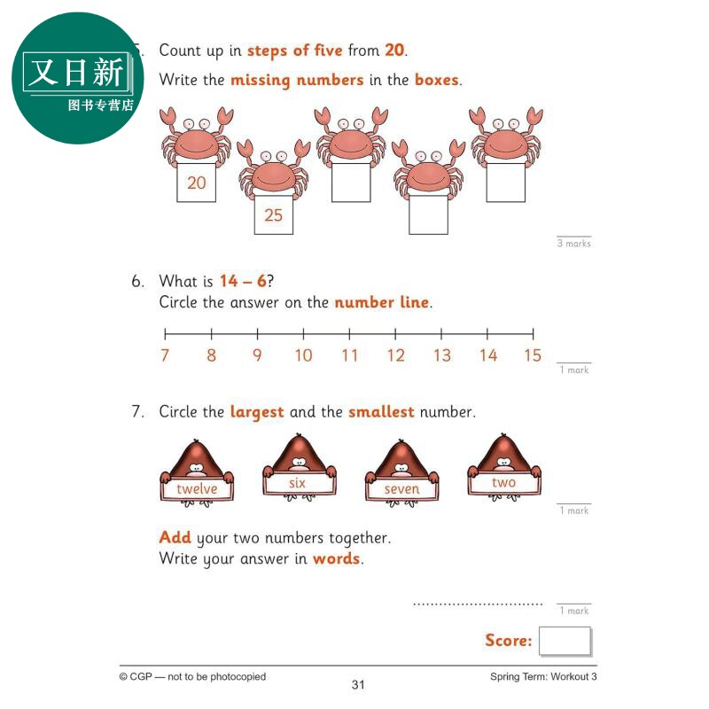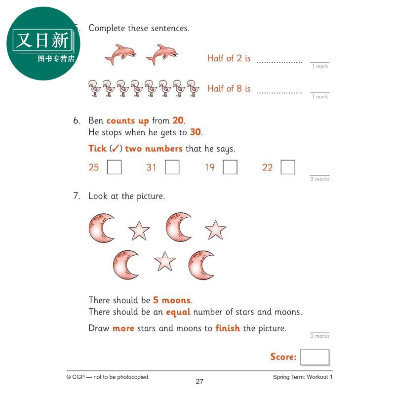 英国CGP KS1 Maths 10-Minute Weekly Workouts - Year 1 又日新 - 又日新图书专营店