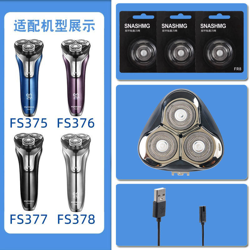 适用飞科剃须刀FS375 FS376 FS377 FS378刀头刀片FR8刀网头盖配件 - 国俊电器城