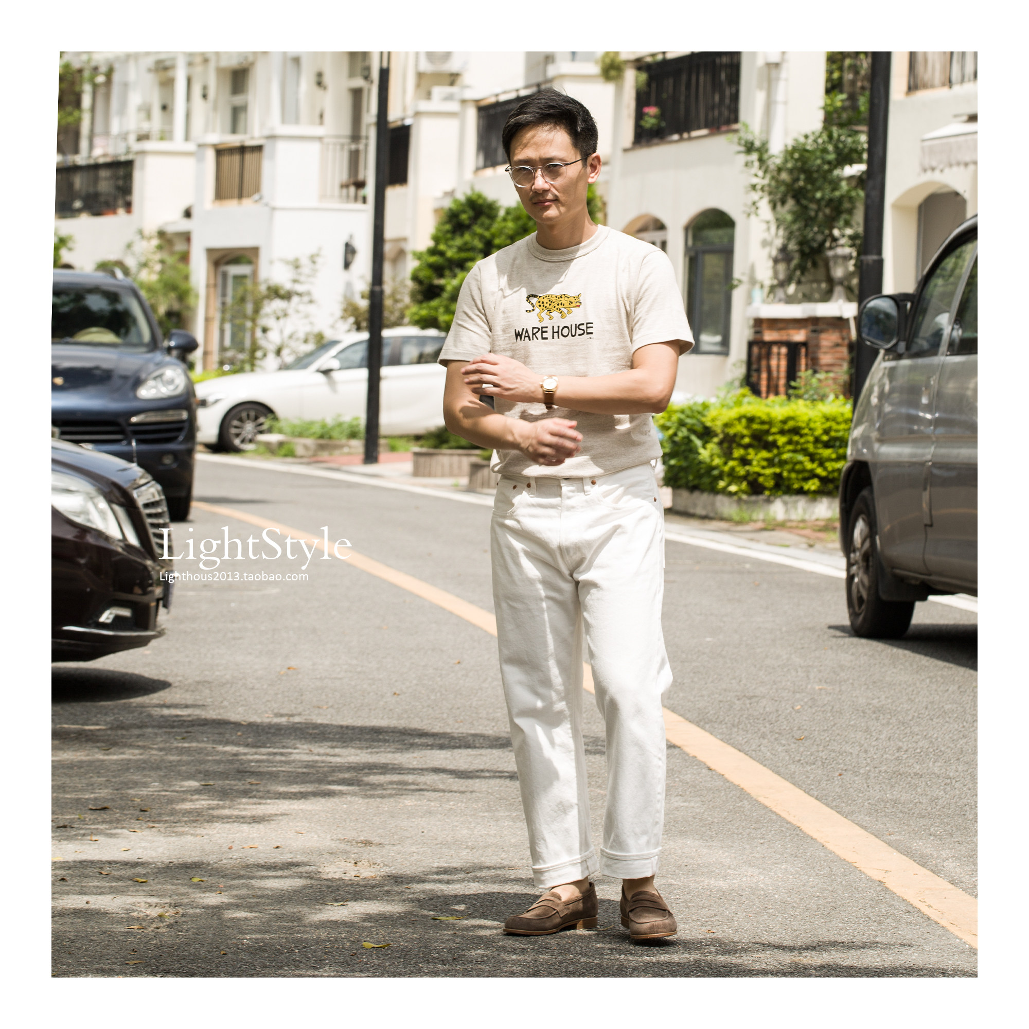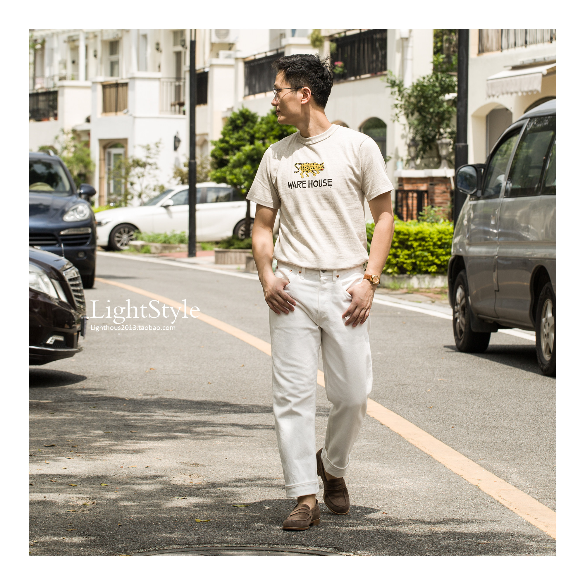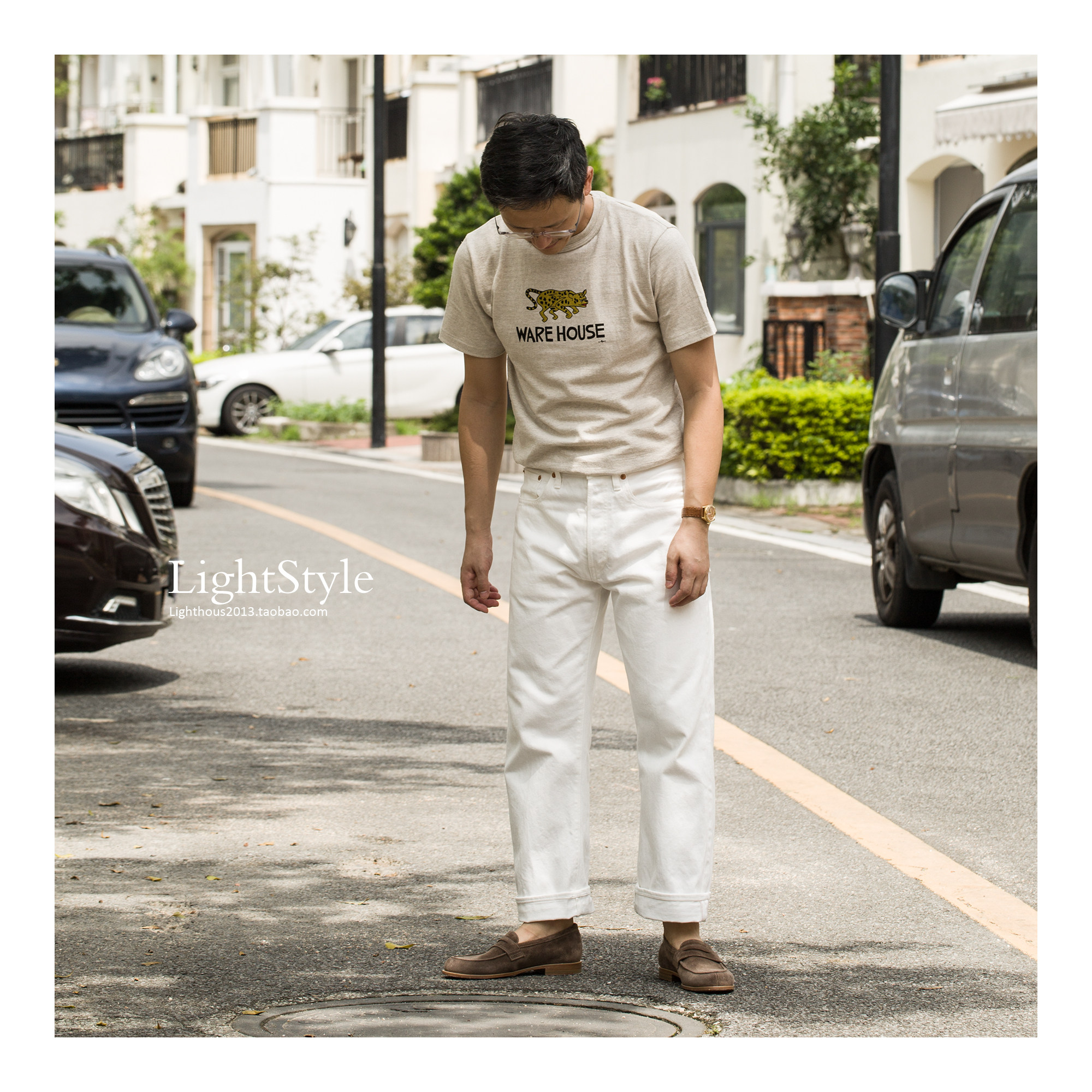 Warehouse x Yusuke Hanai 花井雄介捷豹印花限定筒织纯棉T恤 - 德山商店