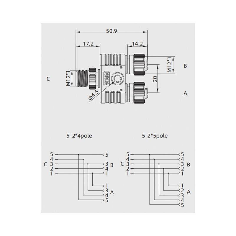 您的位置:安康生态农业开发平台  >   >  WAIN唯恩M12Y-M05A/2M12-F05A-NX5-2*5pole3通1针-2孔Y型分支器