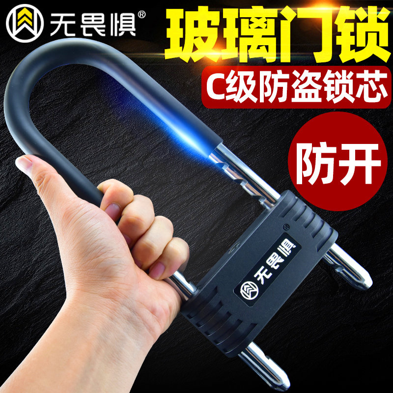 无畏惧C级玻璃门锁U型锁防盗锁商铺门店铺门锁插锁双门推拉门长锁 - 鸿百纳家居专营店