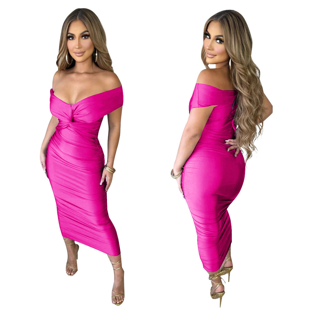 Women's solid color V-neck pleated dress女性感纯色褶皱连衣裙 - 折扣鞋服大卖场