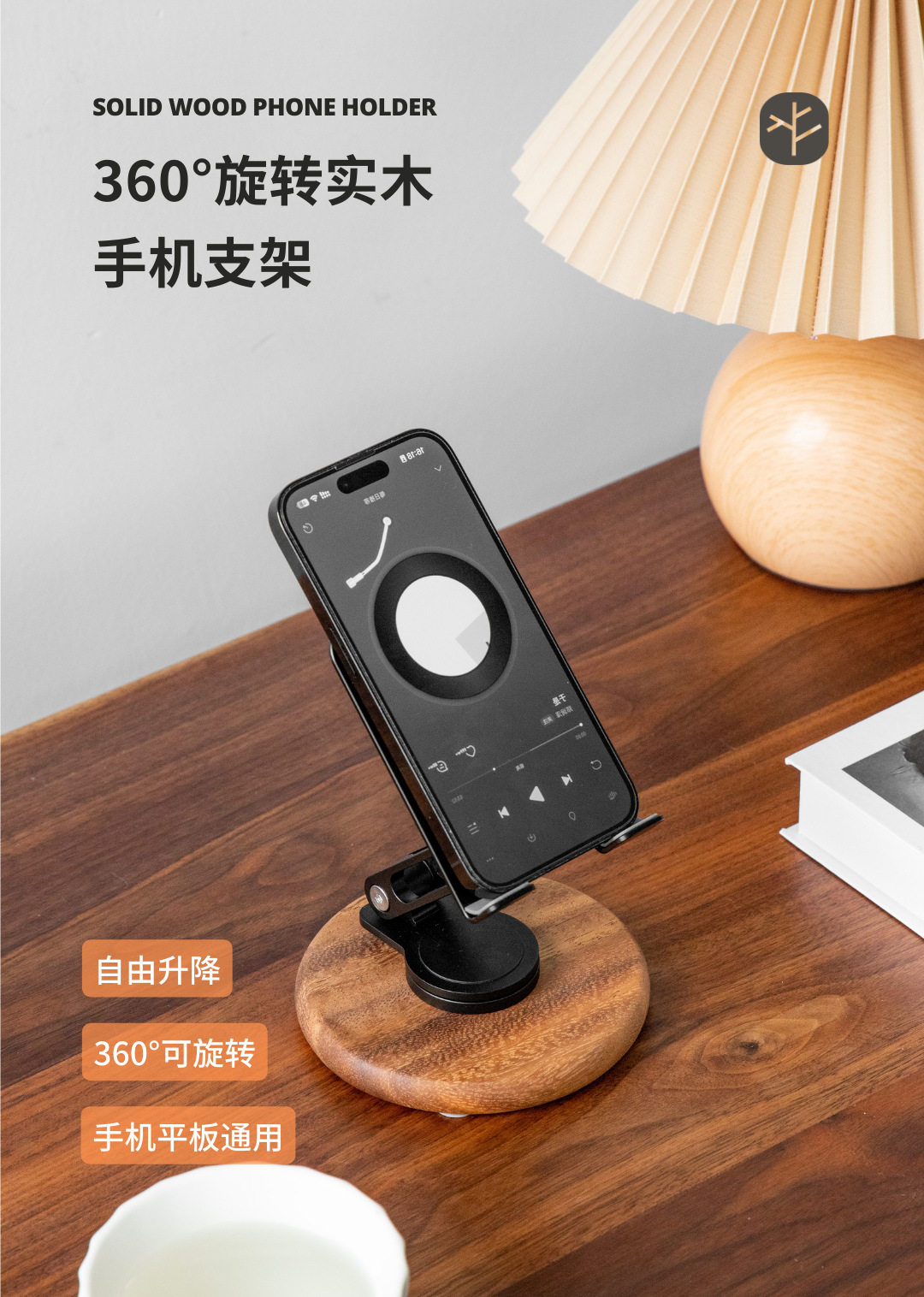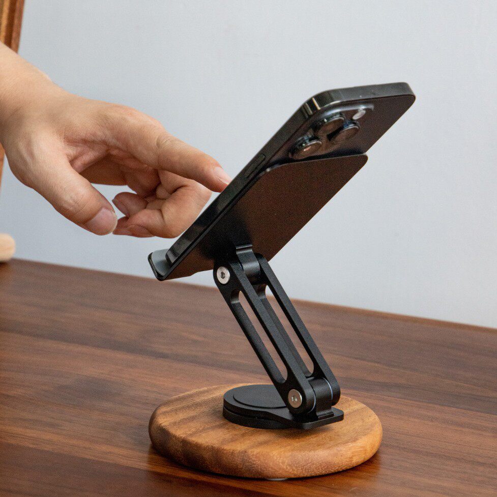 新款相思木平板iPad手机支架通用360°旋转折叠懒人桌面直播托架 - 优尼斯
