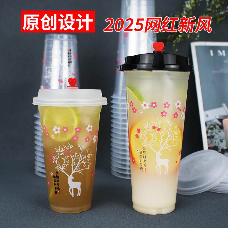 一次性奶茶杯子商用带盖700ml果汁饮料杯塑料豆浆杯打包杯500定制 - 北帝琦博裕鑫专卖店