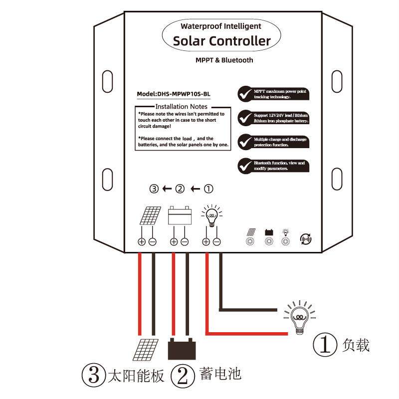 防水12V24V10A20A30A太阳能控制器MPPT蓝牙RS485通讯锂电池通用型 - 航埠商贸城