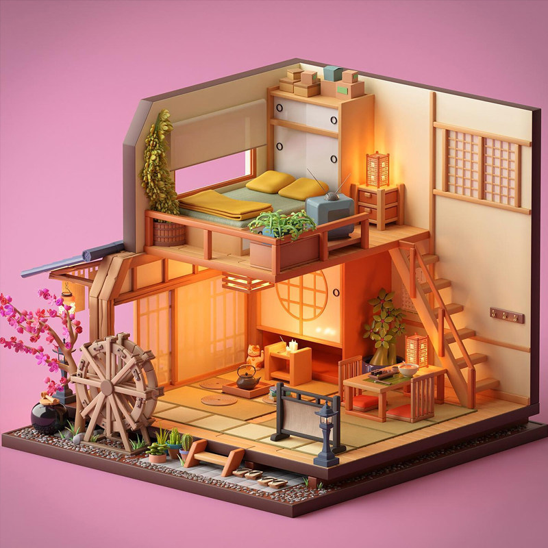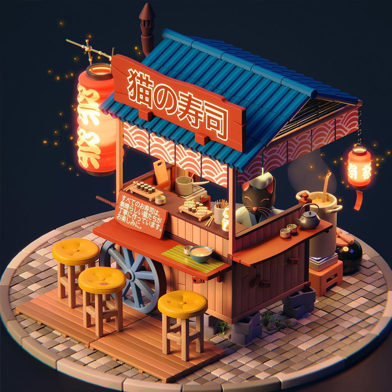 Blender低多边形3维建筑场景教程建模灯光渲染相机构图全流程课程 - 艺境3DCG
