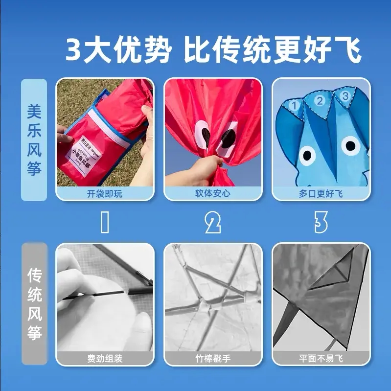 【下单立减30】儿童风筝微风易飞公园春天3D立体章鱼软体无骨 - 全球优选好物集合店