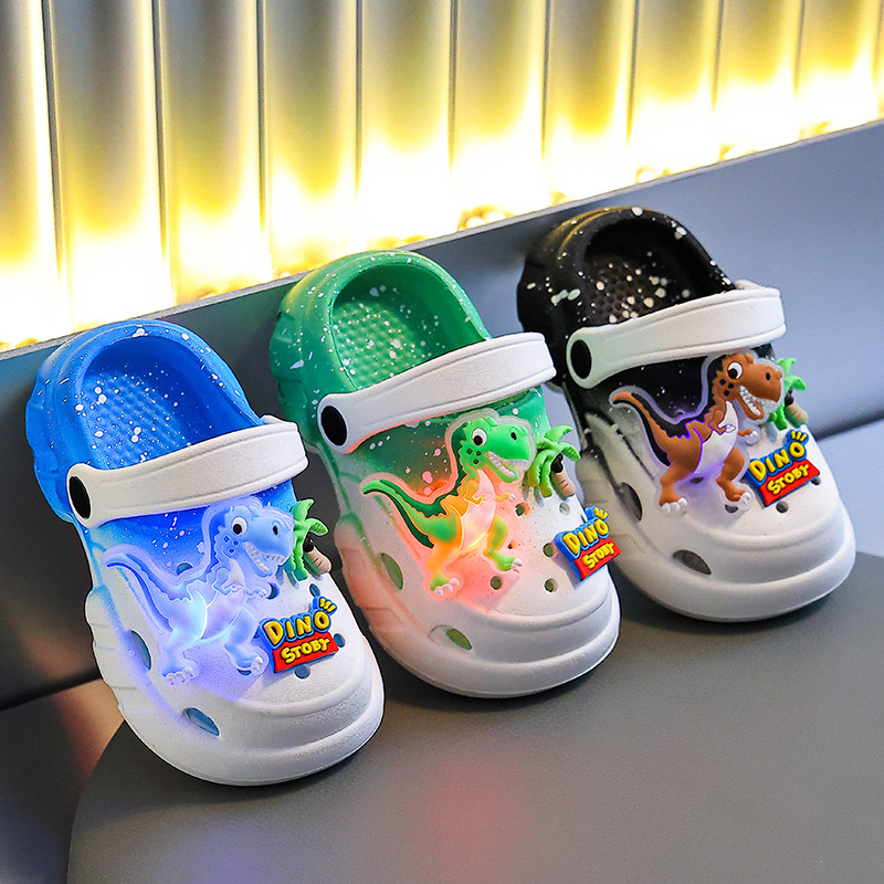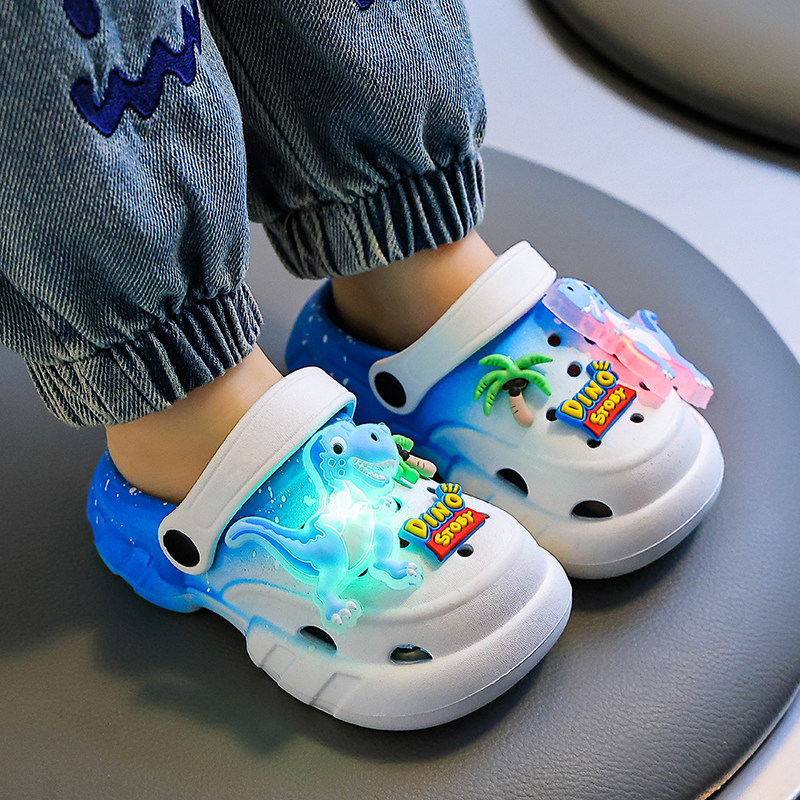 儿童凉鞋夏季VEA发光恐龙洞洞鞋防摔男女童镂空小童婴儿包头凉拖 - 小剑童鞋