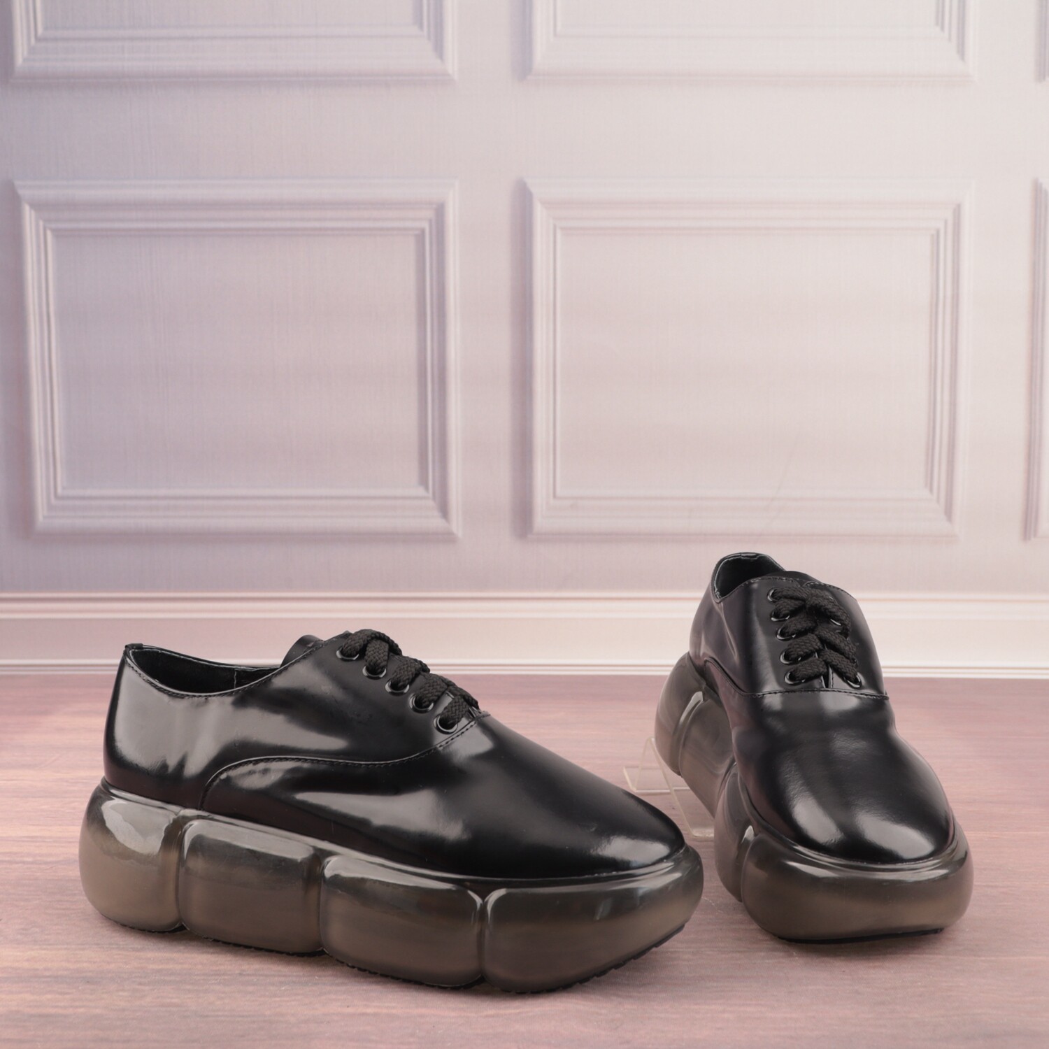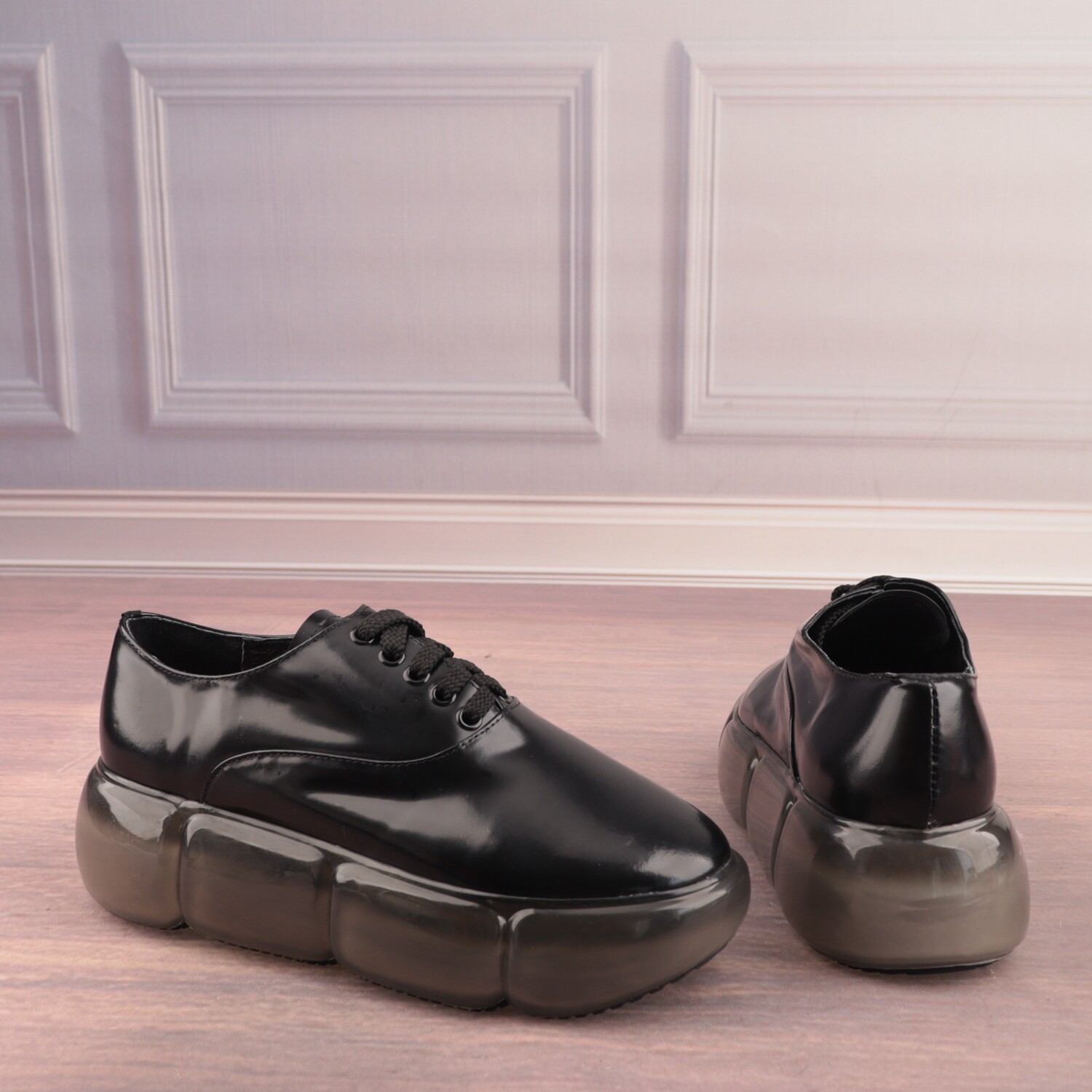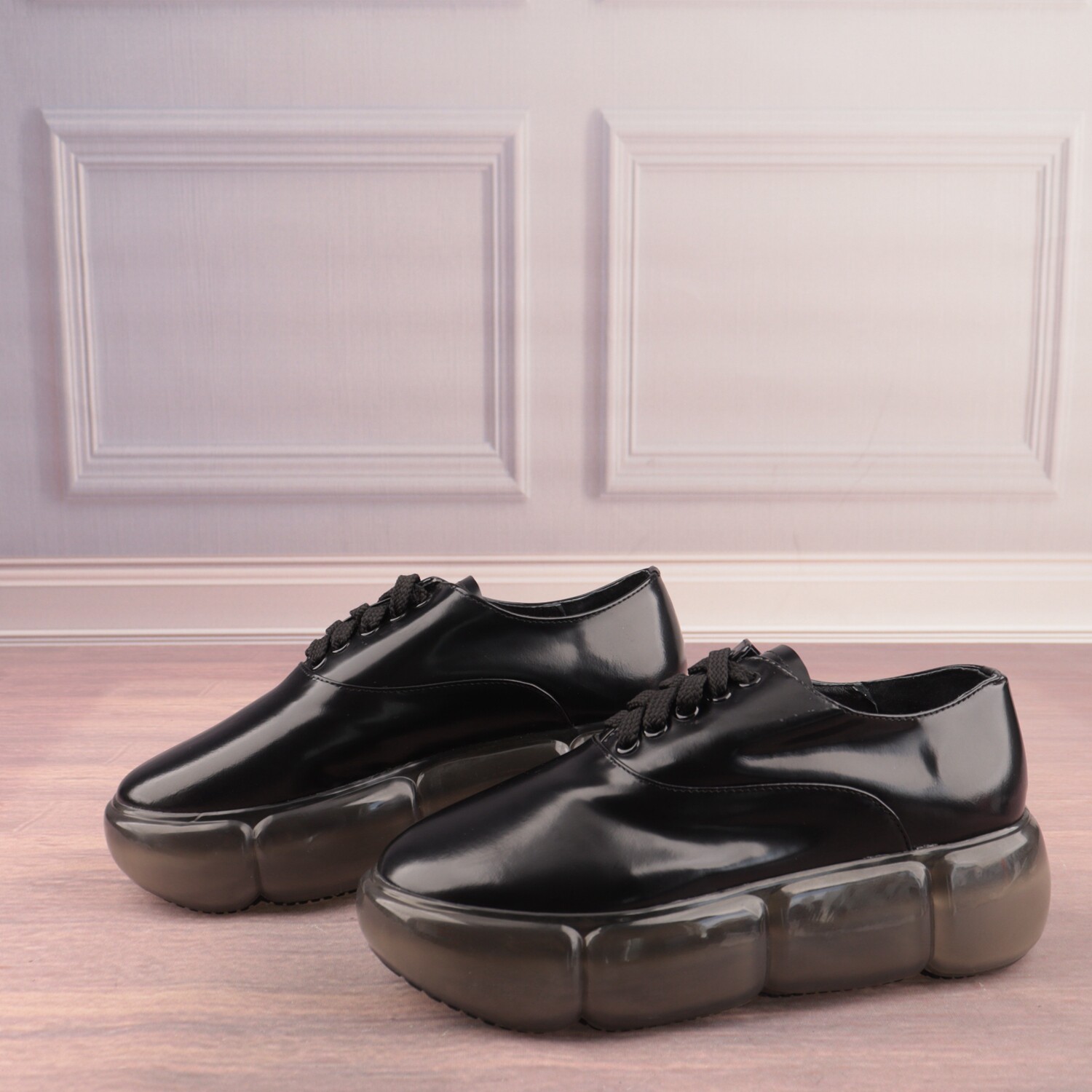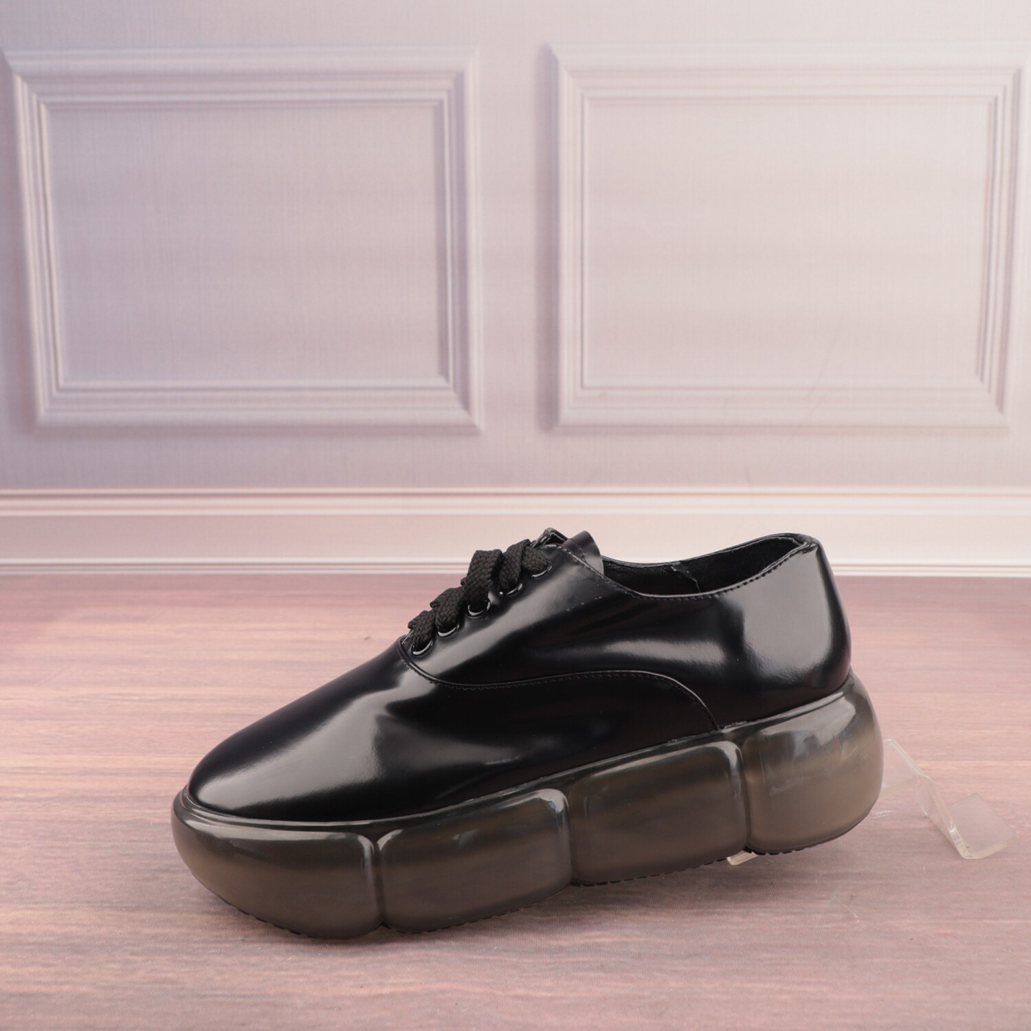 35码漆皮拼色松糕底圆头猪皮真皮里女鞋子时尚深口单鞋D142-3 - 贝哲芙真皮鞋库