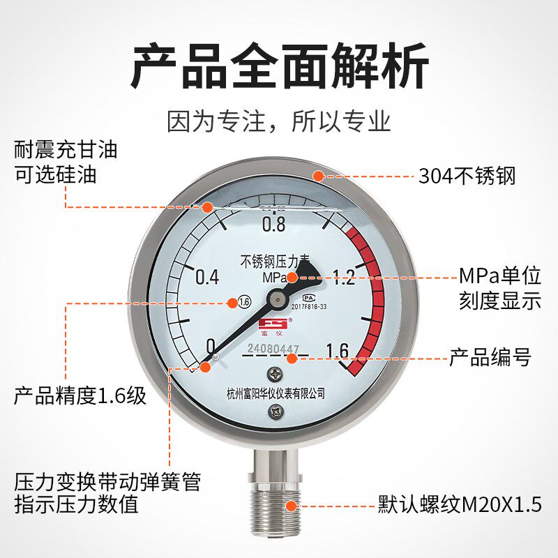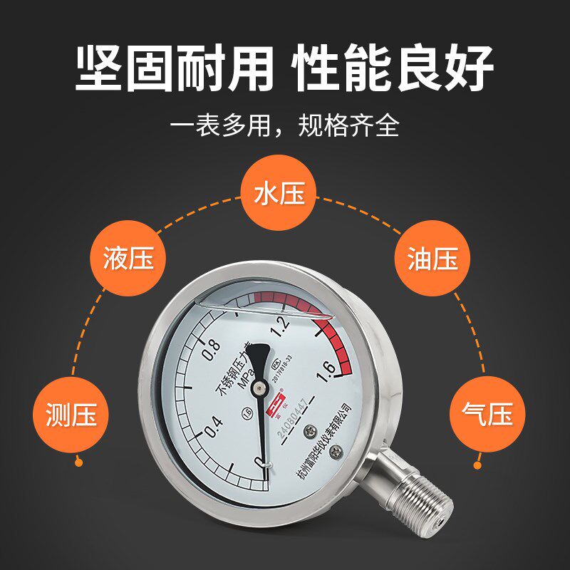 您的位置:安康生态农业开发平台  >   >  华仪不锈钢304耐震压力表YN100BF耐高温蒸汽油压表1.6mpa真空负压
