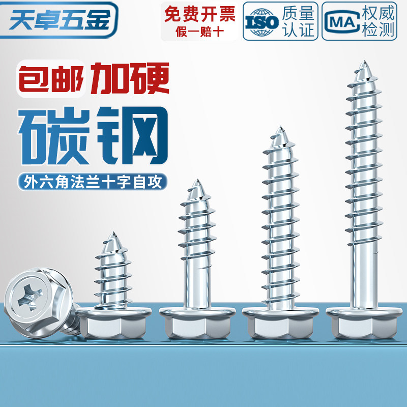 镀锌十字凹穴法兰面外六角自攻螺丝 尖尾带垫木螺钉M3M4M5M6M8mm - 天卓五金官方旗舰店