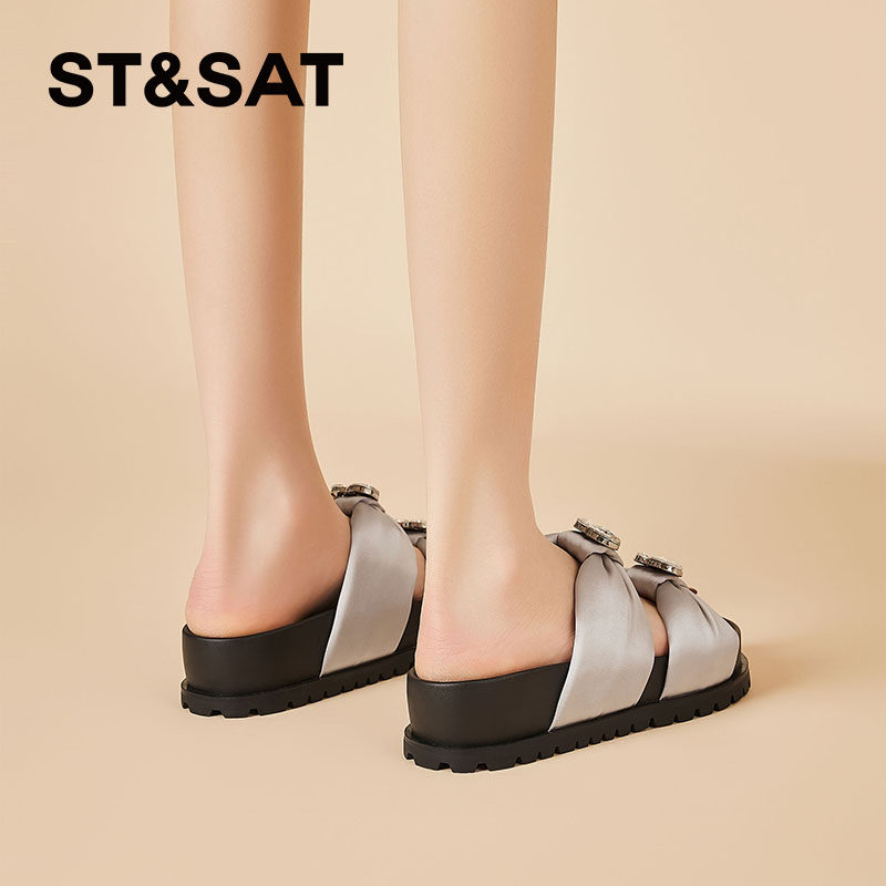 星期六时尚水钻拖鞋女款2026新款夏季外穿黑色百搭厚底一脚蹬凉鞋 - STSAT星期六民创专卖店