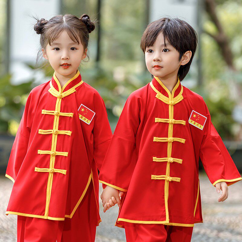 儿童武术服中国风表演服男女练武服少儿长袖训练服太极武术练功服 - 库鸣旗舢店企业店