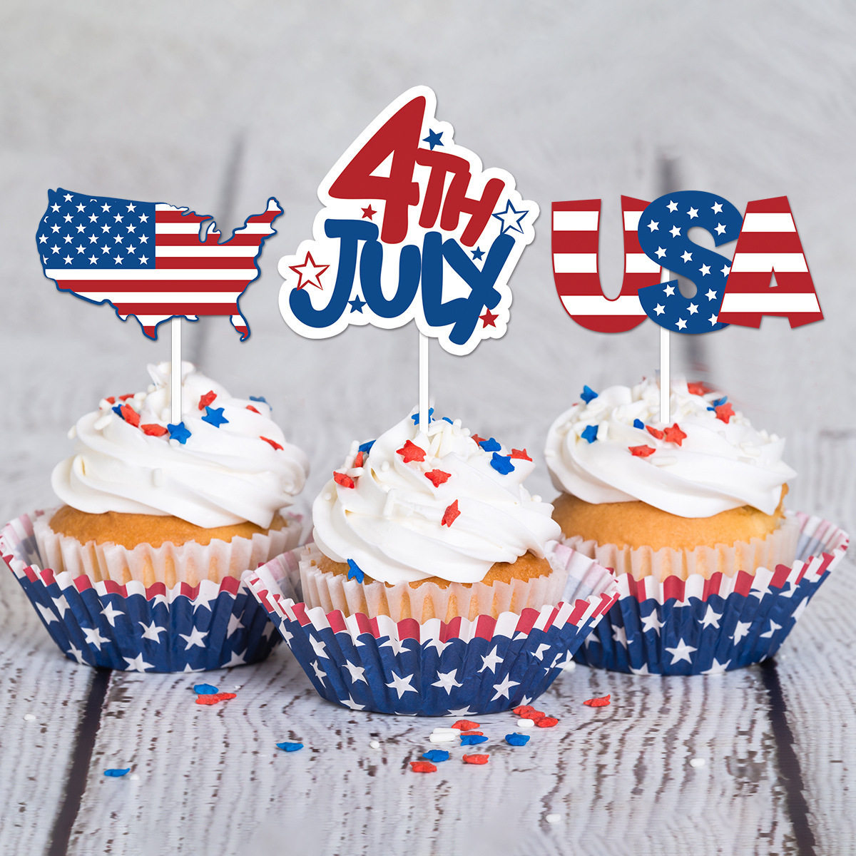 American themed 12pcs cake paper cup flags, USA Independenc - 跨境货源工厂
