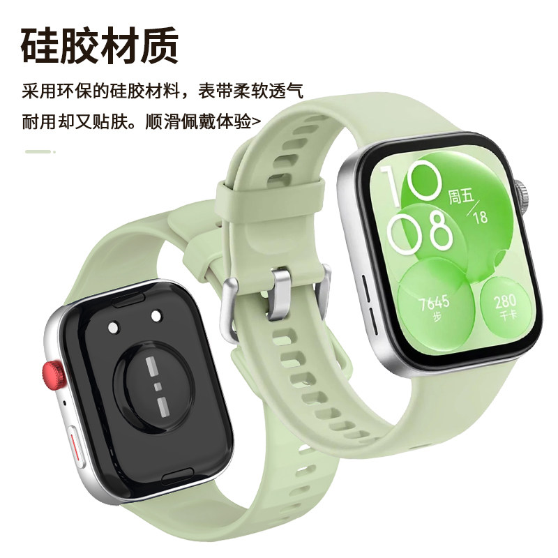 适用华为fit3表带手表watchfit4pro官方同款硅胶二三四代夏天腕带新款原野绿智能运动女生时尚男一体式替换带 - 鸣铎旗舰店