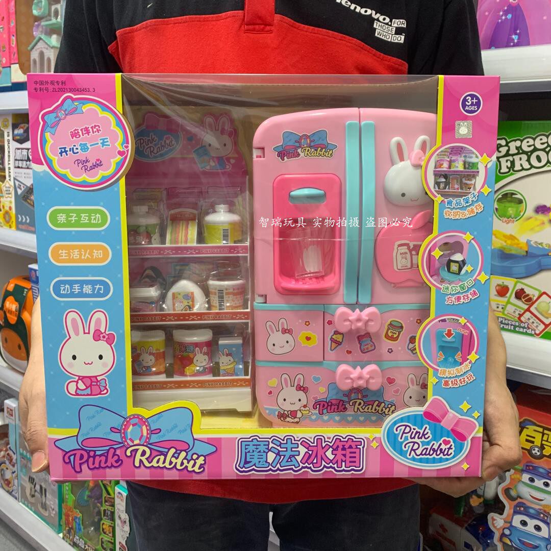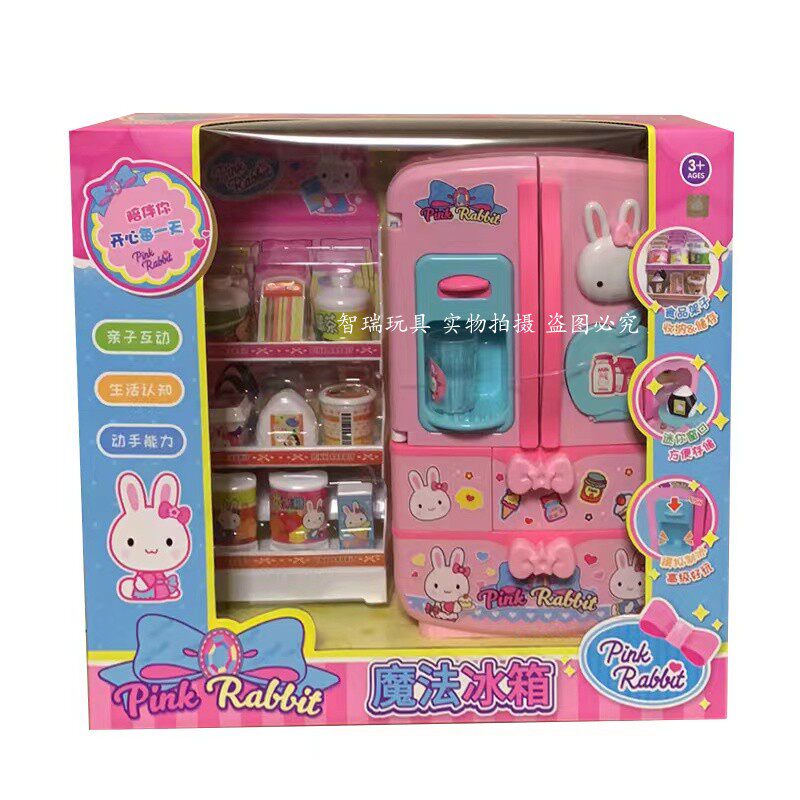 一言粉红兔魔法冰箱仿真过家家双开门厨房玩具多功能出冰女孩礼物 - 智瑞玩具