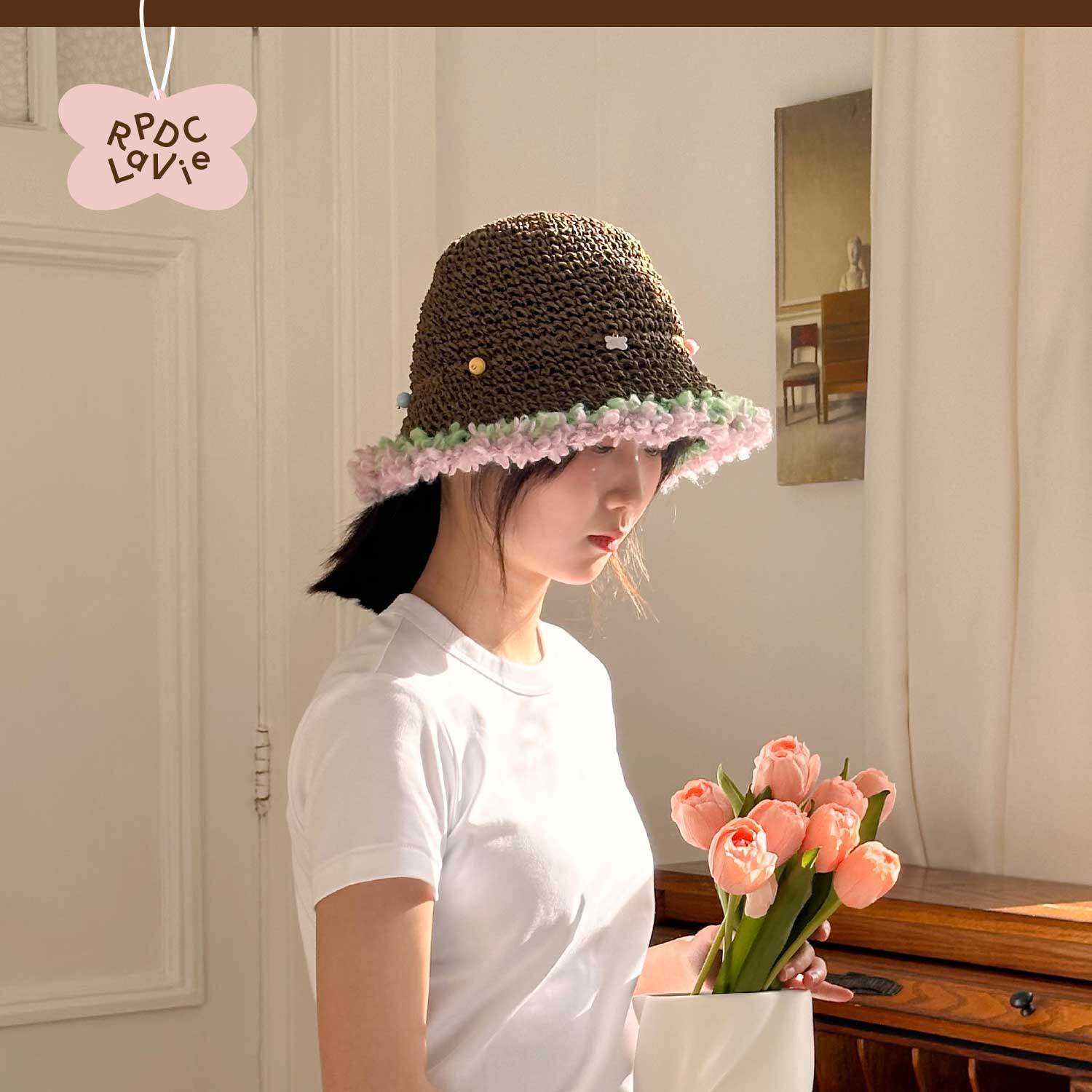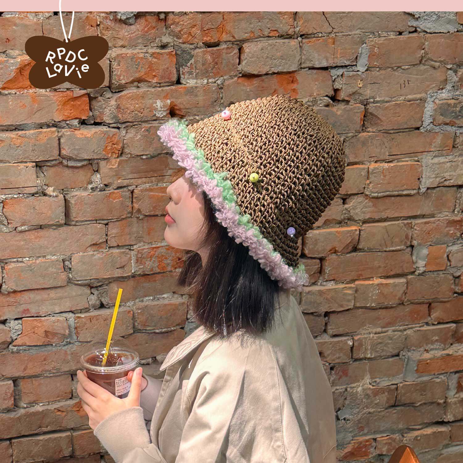 RPDCLaVie「彩色糖豆」手工渔夫帽编织草编帽遮阳帽便携rpdc帽子 - RPDCLaVie