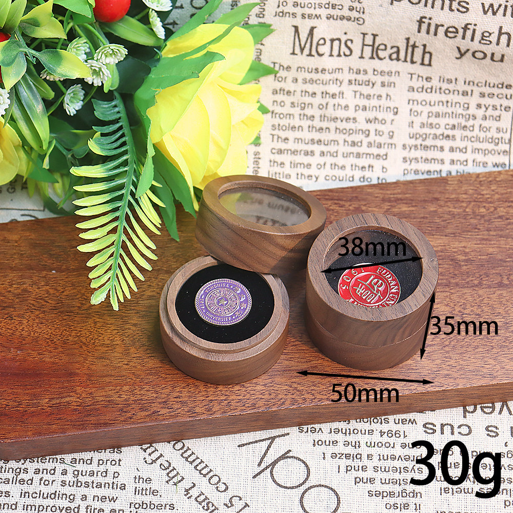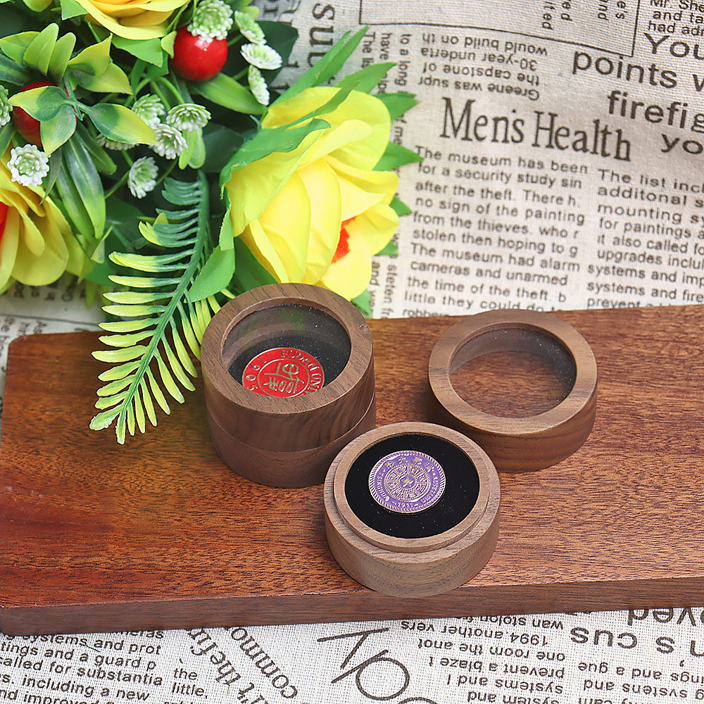 天地盖圆形复古徽章盒胡桃木PIN收纳盒便携式小号木质纪念章盒 - 木艺珍品