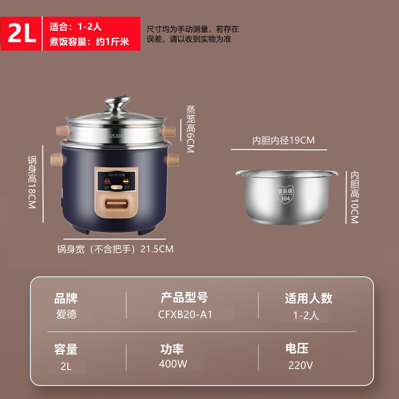 AIDE(家电) CFXB40-A爱德0涂层电饭锅老式家用304不锈煲2迷你3 - 森美家电专柜店