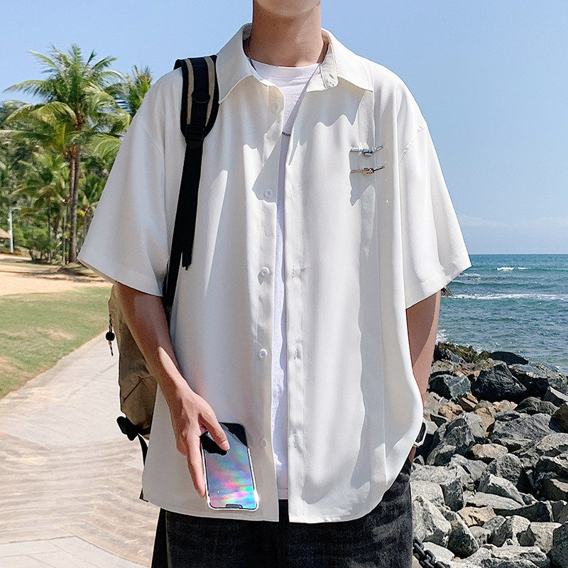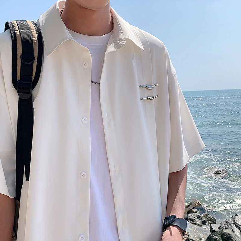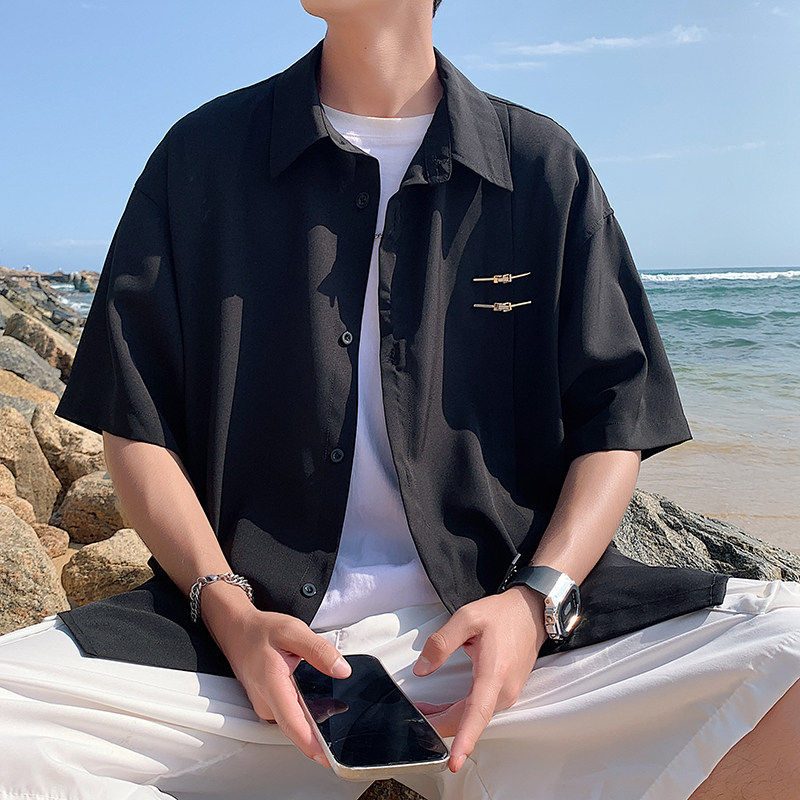 2026 年新款夏季男港风大码短袖衬衣外套新中式冰丝降温宽松舒适 - YUN ECHO