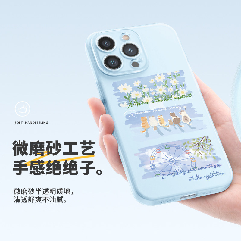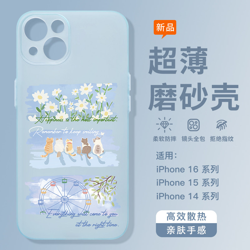 适用苹果17promax夏天散热手机壳16Pro透明磨砂壳iPhone15可爱猫咪14pm治愈系风景苹果13情侣手机壳17文艺女 - 犀膜旗舰店