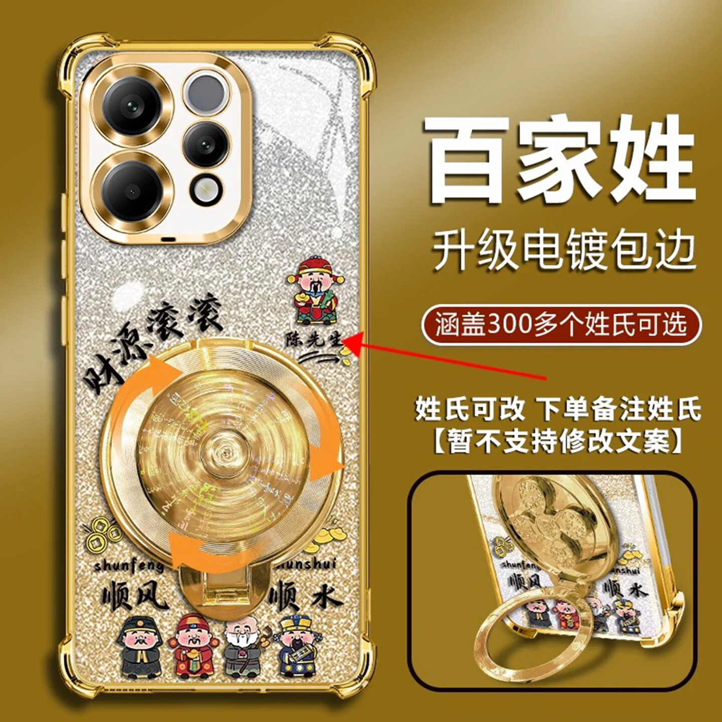 姓氏定制财源滚滚适用vivos50手机壳新款高级金色渐变s30/s20外壳风生水起支架s50promini防摔手机套男款 - 美壳优品数码店