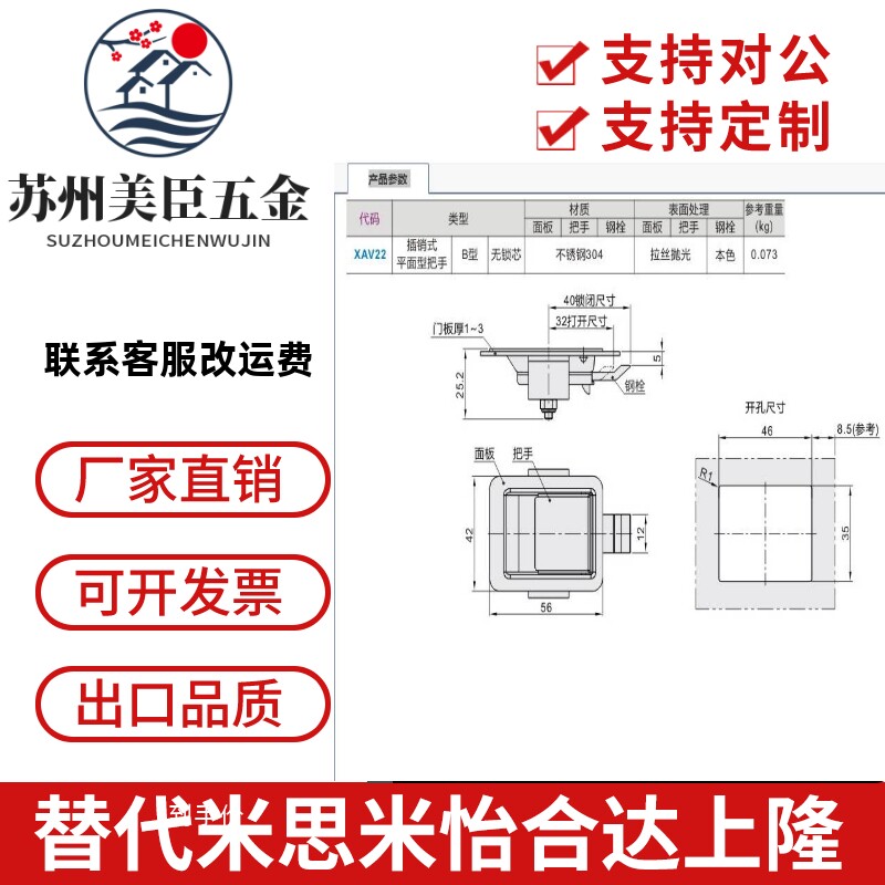 怡合达型 XAV22插销式平面型把手 B型面板锁 304不锈钢扣式面板锁 - 苏州美臣五金