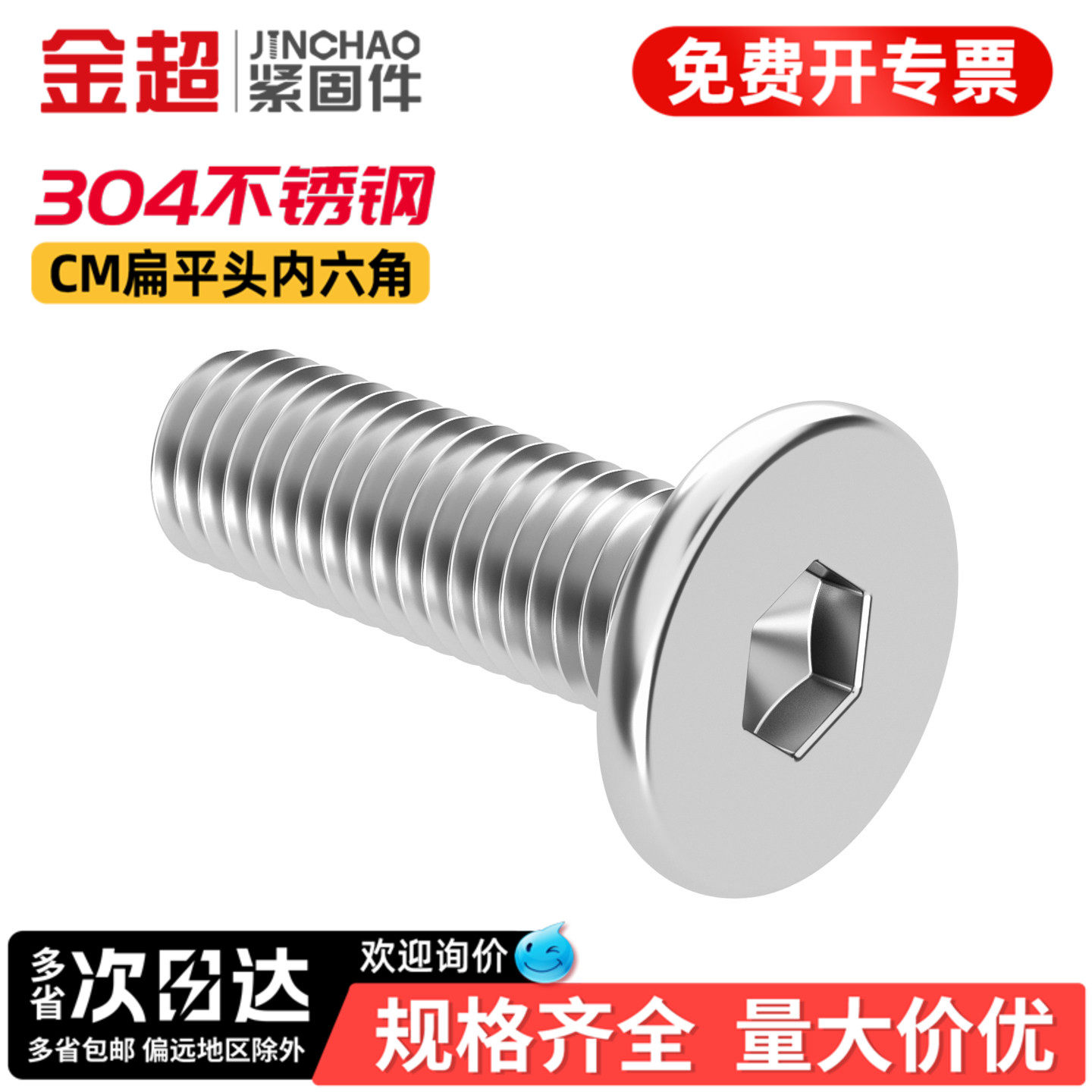金超304不锈钢CM扁平沉头螺栓超薄头平头内六角螺丝机螺钉M2M3M4 - 金超官方旗舰店