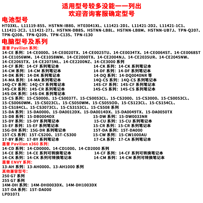 您的位置:安康生态农业开发平台  >   >  适用HP惠普HSTNN-LB8M DB8R UB7JTPN-Q207 Q208 HT03XL笔记本电池