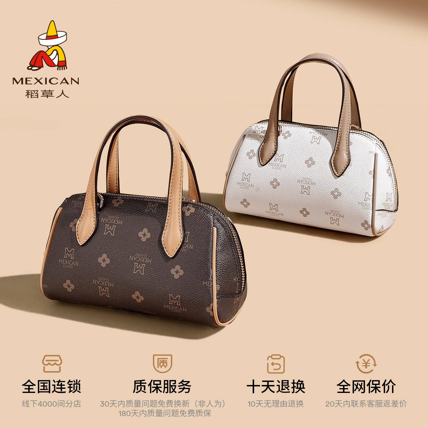 稻草人包包女2026新款时尚手提包复古老花枕头包休闲单肩包斜挎包 - 稻草人箱包旗舰店