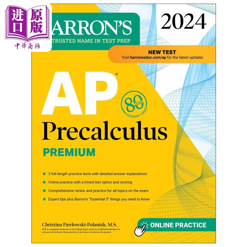 新版2024年 AP考试微积分预科高级版3次练习测试综合复习在线练习巴朗AP考试课程AP Precalculus Premium Barrons【中商原版? - 中华商务图书专营店