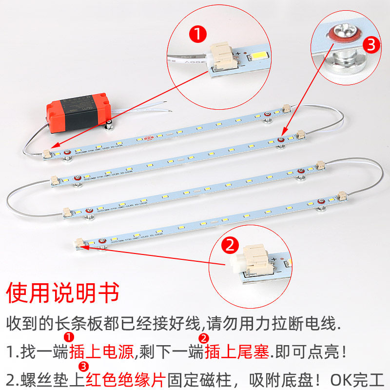 led吸顶灯改造长方形灯板灯泡改装长条贴片灯珠灯芯灯片灯带灯条 - 格亮美