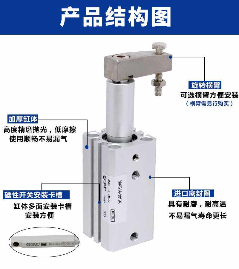 原装回2转夹紧气缸MKB12/16/0/25-N10/20/30/50RN/L带横臂 - 逛商家工厂店