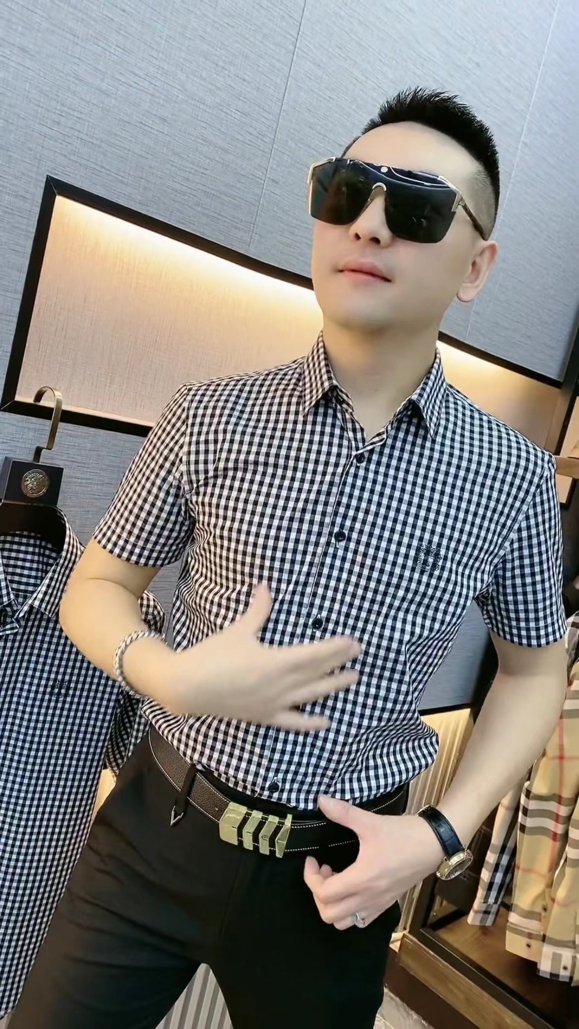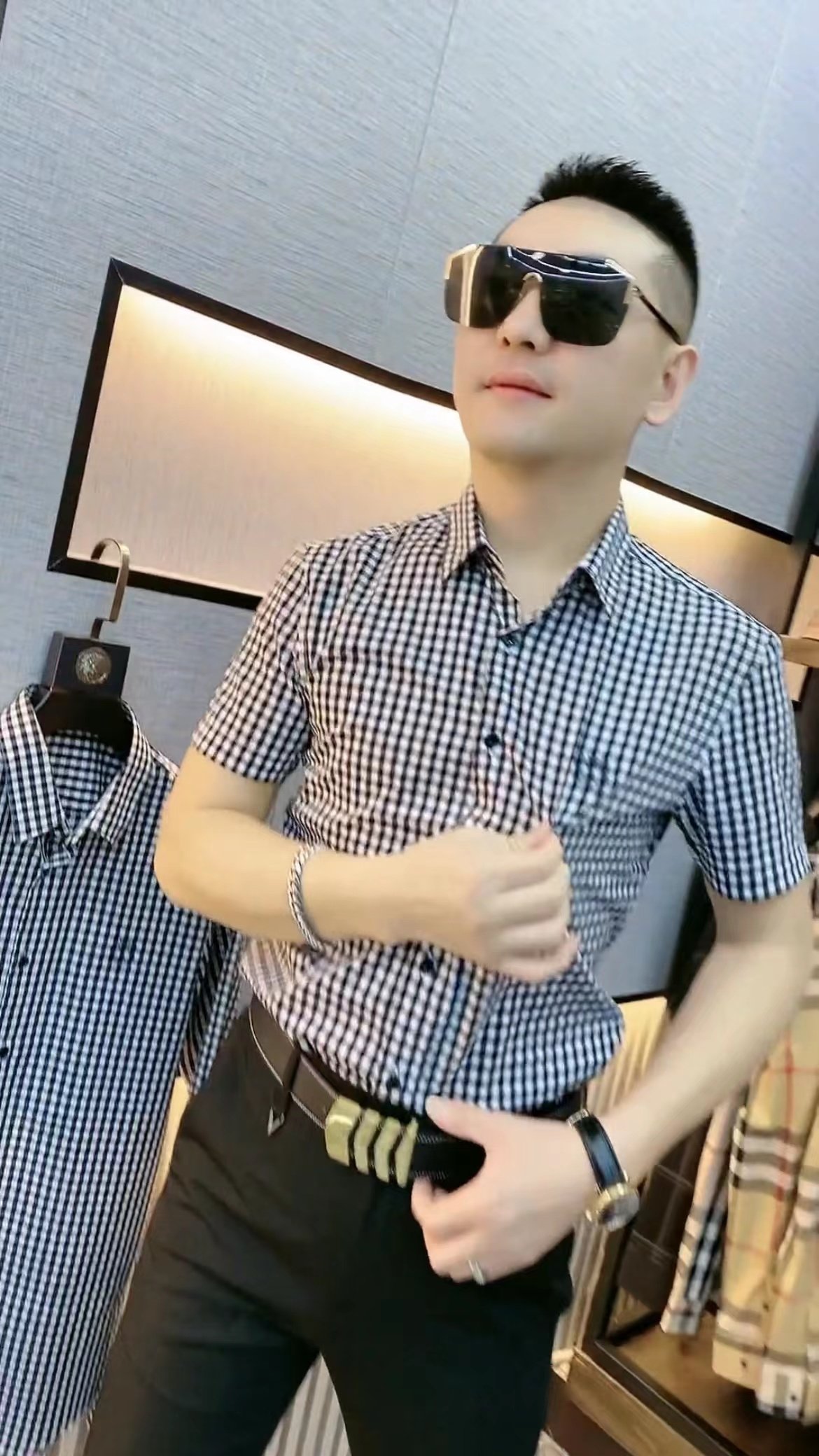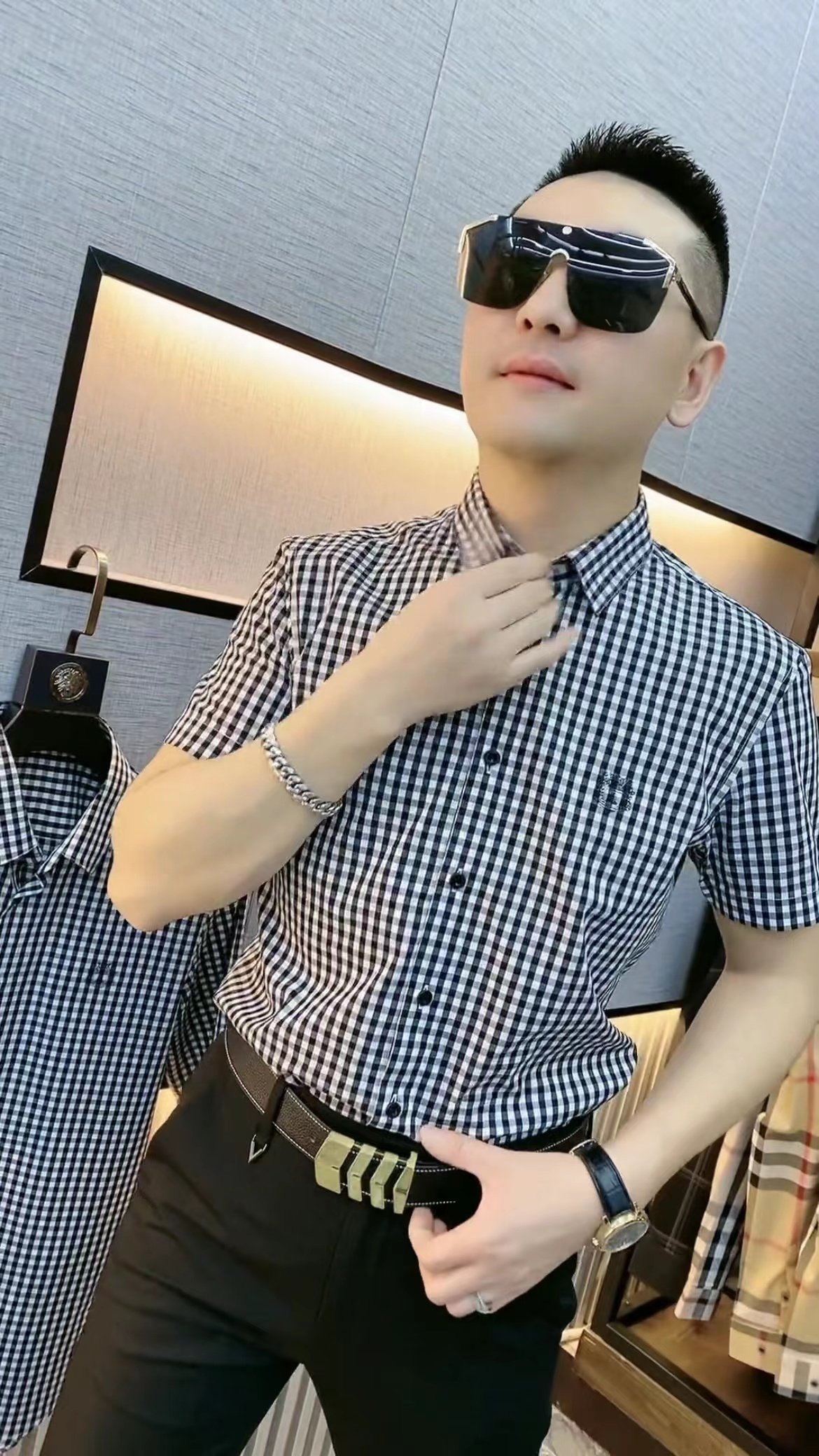 您的位置:安康生态农业开发平台  >   >  13夏季男士半袖衬衫男欧货千鸟格翻领潮流无痕免烫夏装格子衬衣男