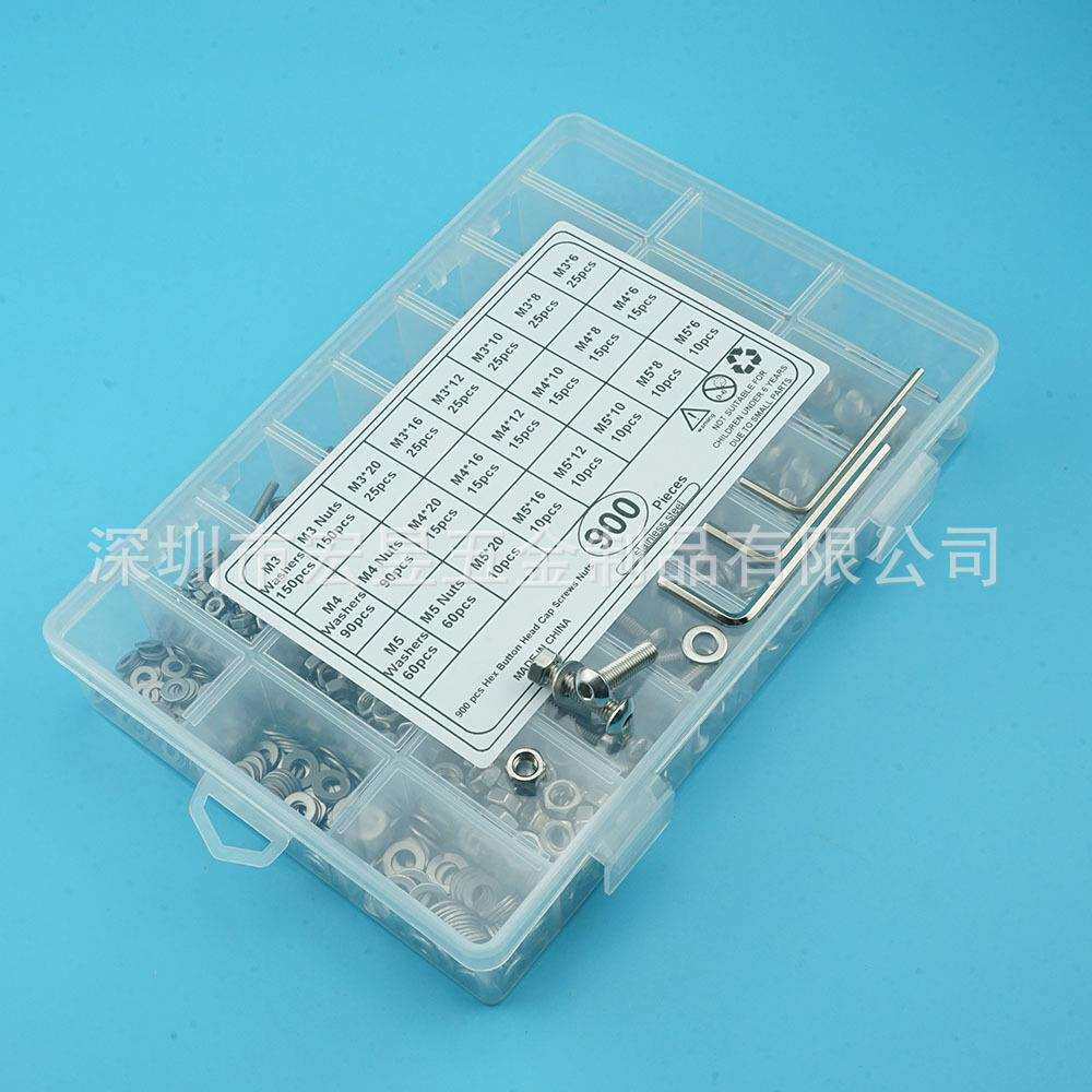 900pcs M3 M4 M5不锈钢304 盘头内六角螺丝配螺母平垫盒装套装 - 高端好工厂店的小店84