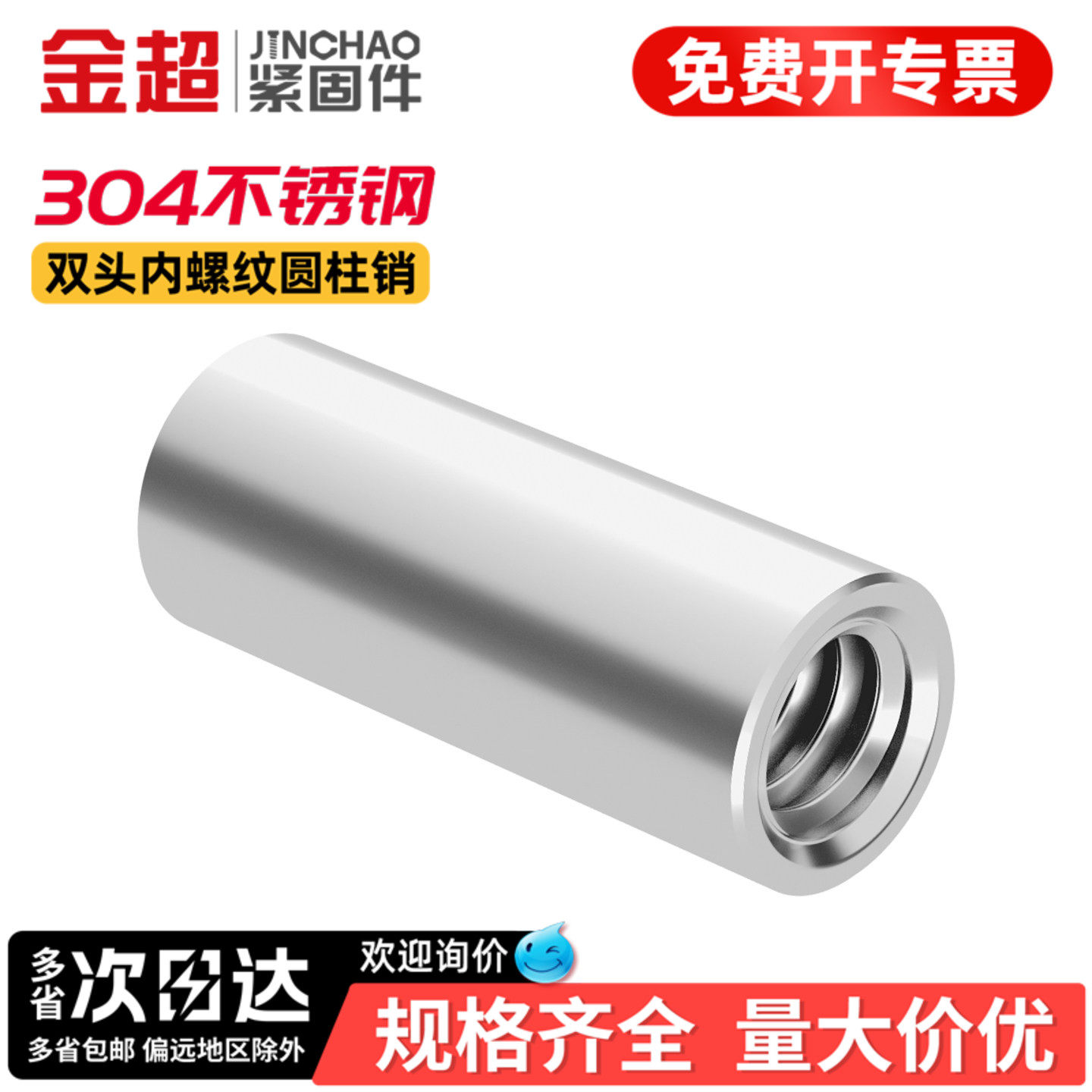 金超304不锈钢双头内螺纹圆柱销两头带孔支撑柱连接杆导柱M4M6M8 - 金超官方旗舰店
