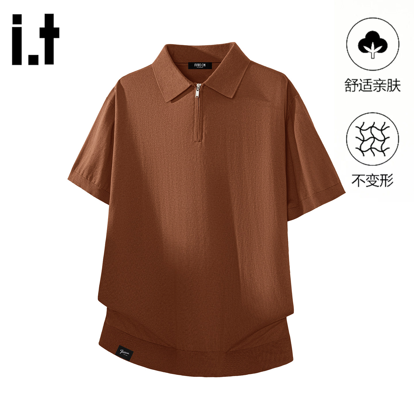 it FIVECM半拉链肌理翻领通勤宽松POLO衫男士夏季时尚潮流短袖T恤 - FIVE CM官方旗舰店