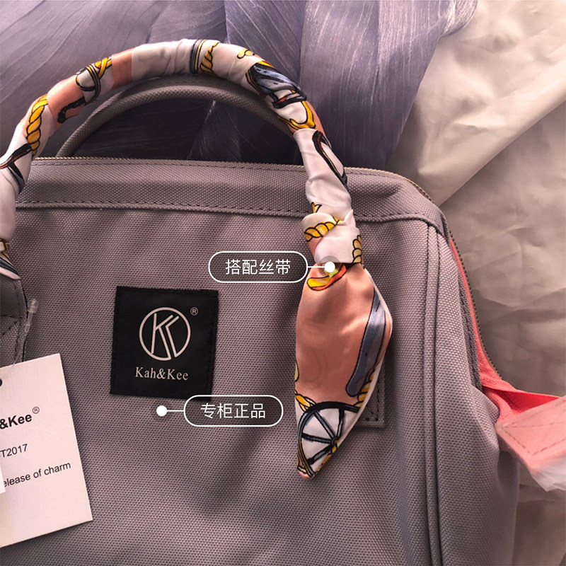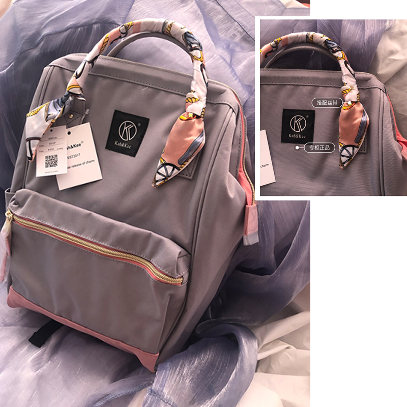 正品超凶~专柜kahkee独家限定款~日本灰粉双肩背书包电脑包女 - 旅行的小叮当